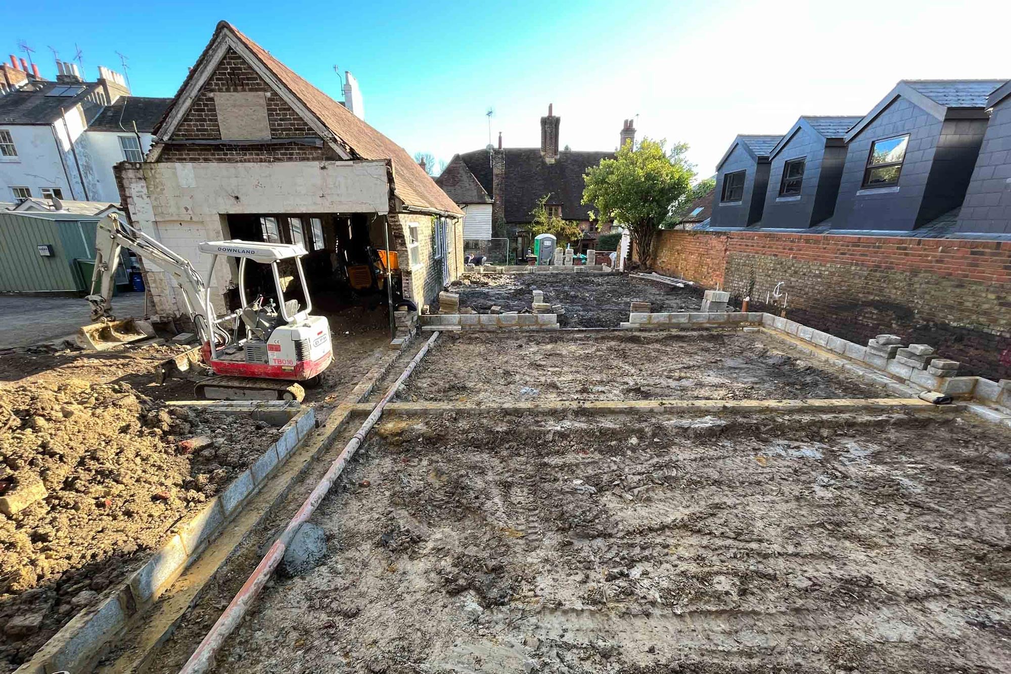 After taking ownership of the property in May 2022, the project of creating a bespoke store for Doodie Stark began. The front property was grade II* listed, so renovations to the Old Bakehouse behind required careful consideration before planning permission was given in September. The plot was divided into two and the front building was immediately put back on the market. Fortunately a buyer was secured by the end of the year. Demolition dominated the initial stages of The Old Bakehouse project, but gave Liz and Rupert a fresh space to create something really special.