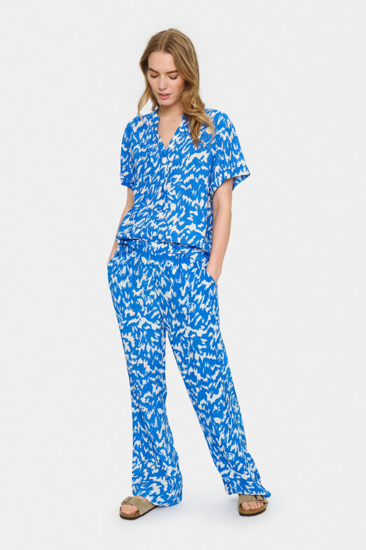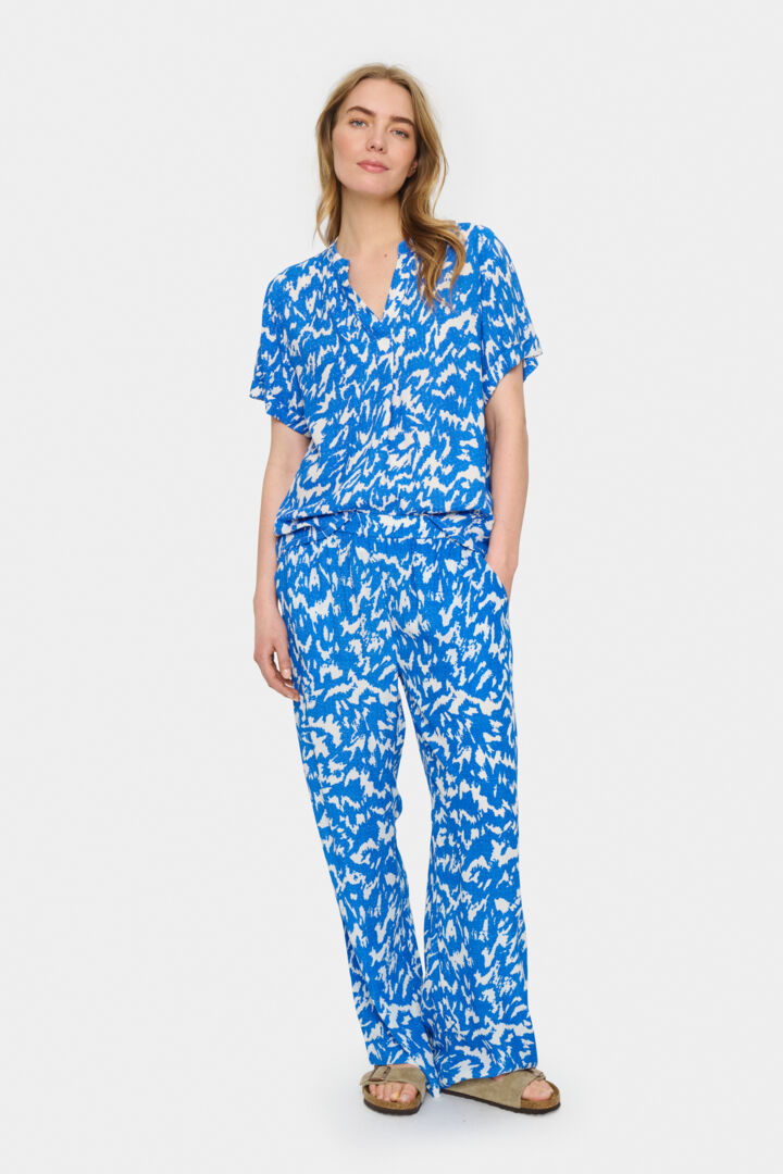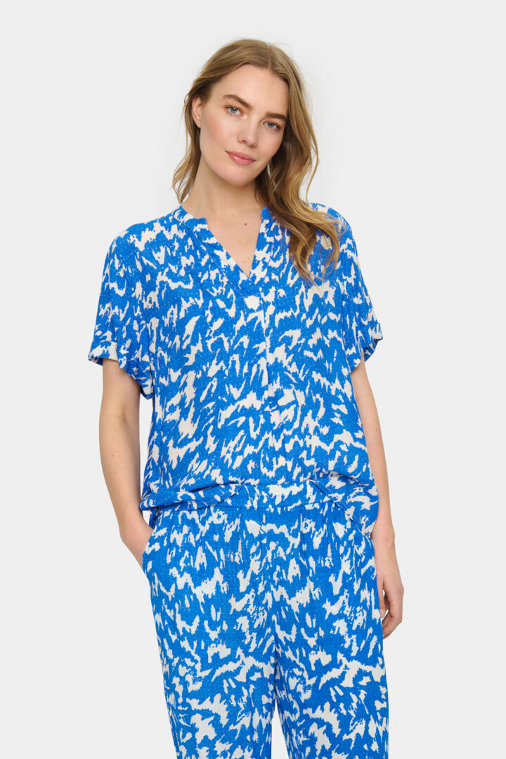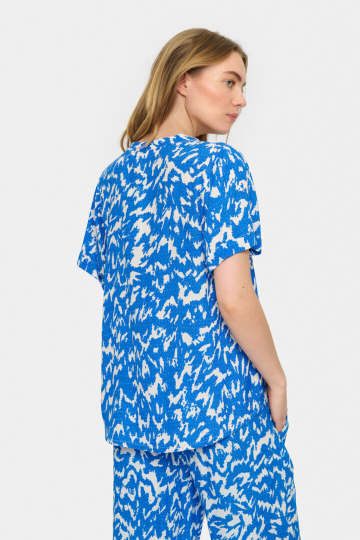 Featuring a playful pattern, this top will add a fun twist to your wardrobe. Short sleeves and a flattering v-neckline make it perfect for any casual outing. Tuck into linen trousers or your favourite pair of jeans for a casual but statement look.