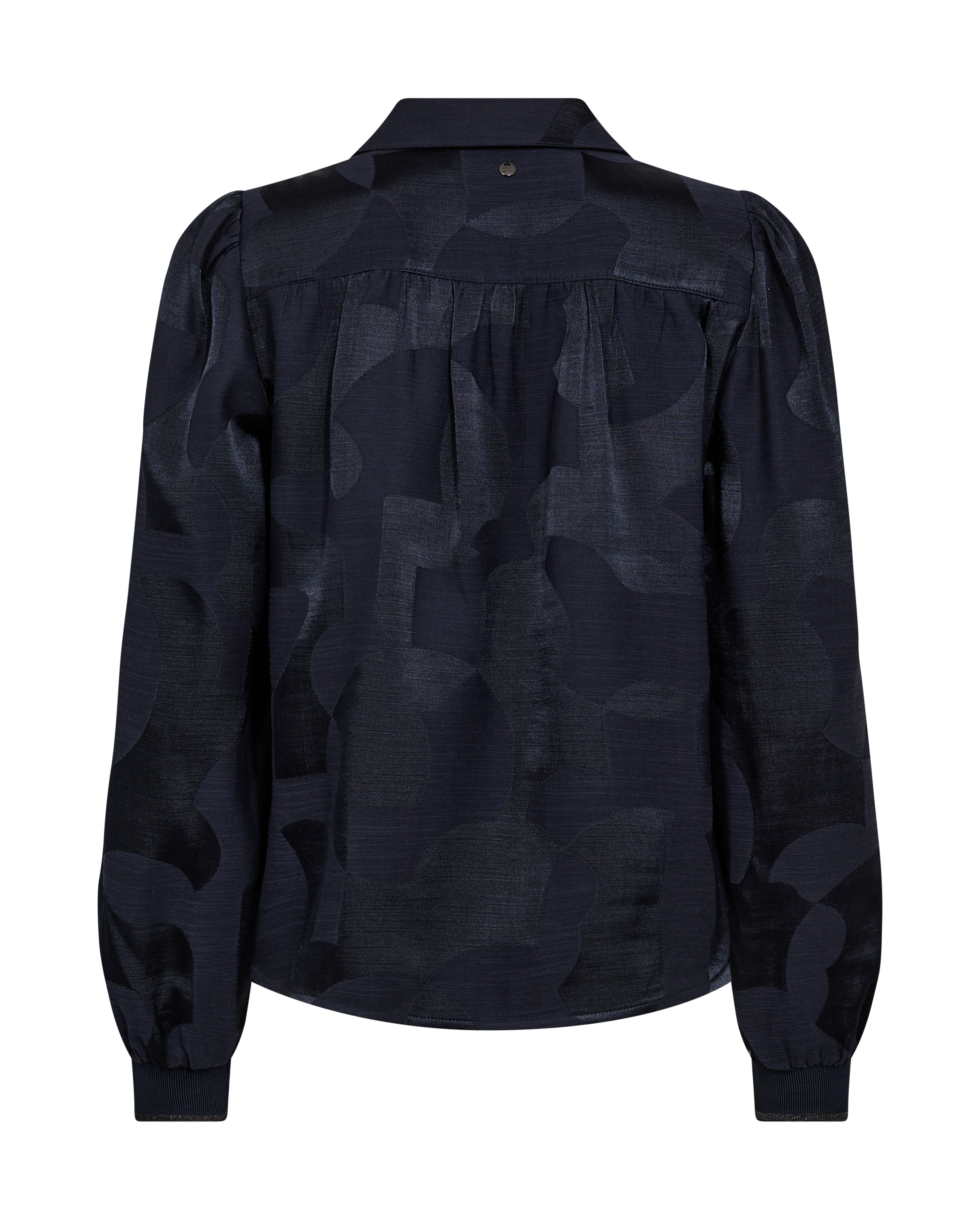 This gorgeous blouse features jacquard fabric, voluminous sleeve, and soft pleat details add a touch of luxury, while the open collar placket and ribbed cuffs provide a comfortable fit. The subtle lurex detail adds a hint of sparkle for a chic look.