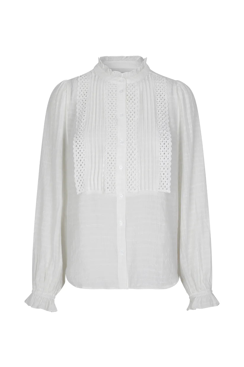 This delicate and feminine blouse is the perfect versatile blouse. With long sleeves and a ruffled collar, the smart and sophisticated look makes this blouse perfect for easy workwear outfits, but it's pleating and fine lace details adds a fun touch, making it great for tucking into jeans.