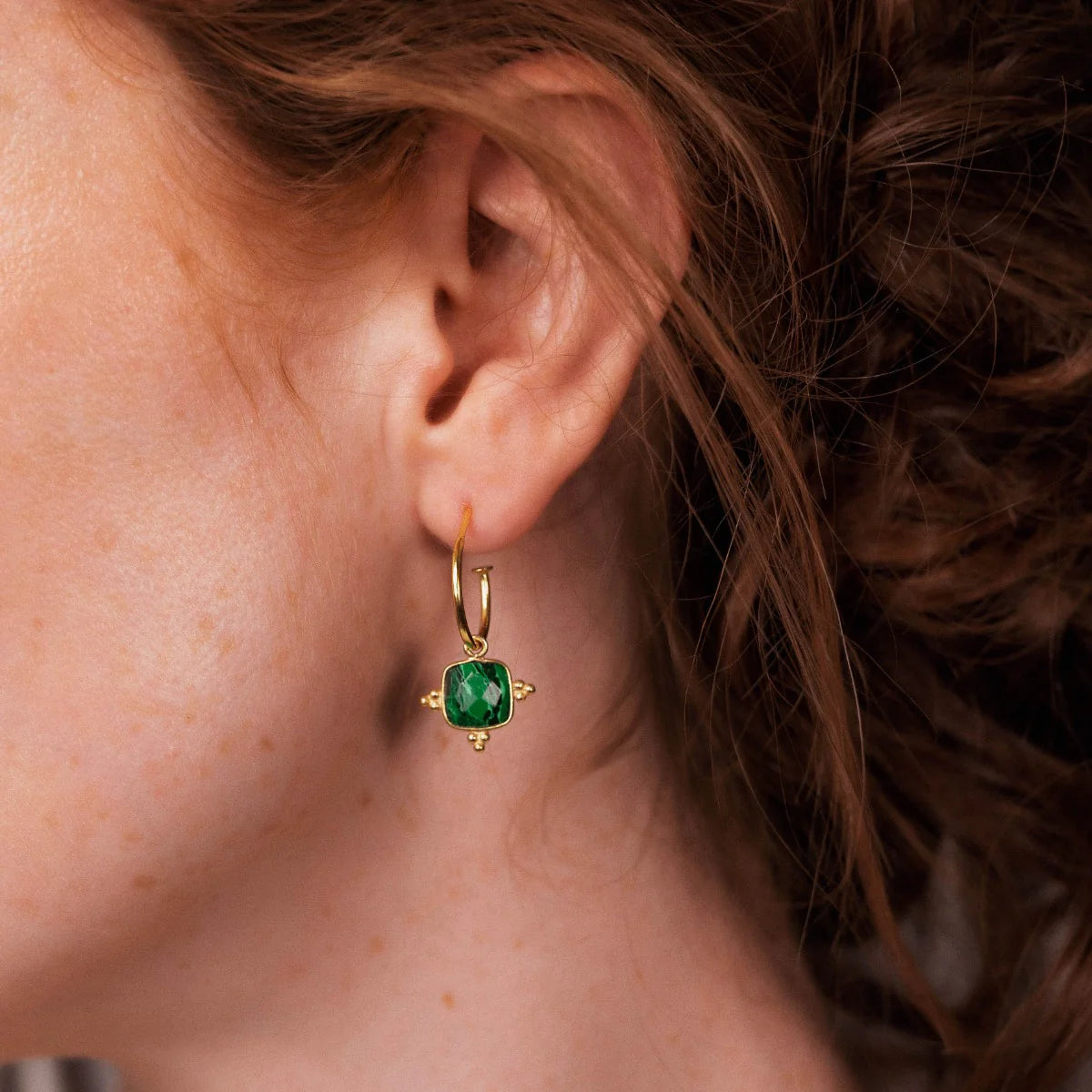 Enhance your style with these earrings featuring delicate gemstones. These are accented with stunning gold dots, adding a touch of elegance to any outfit. With a comfortable fit, these earrings will take your look to the next level so you can elevate your jewellery game with these classy earrings.