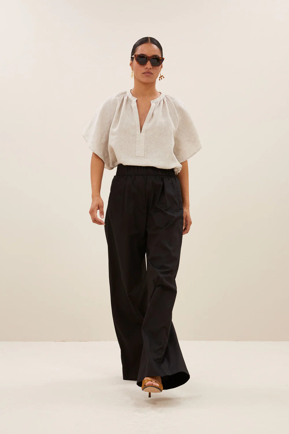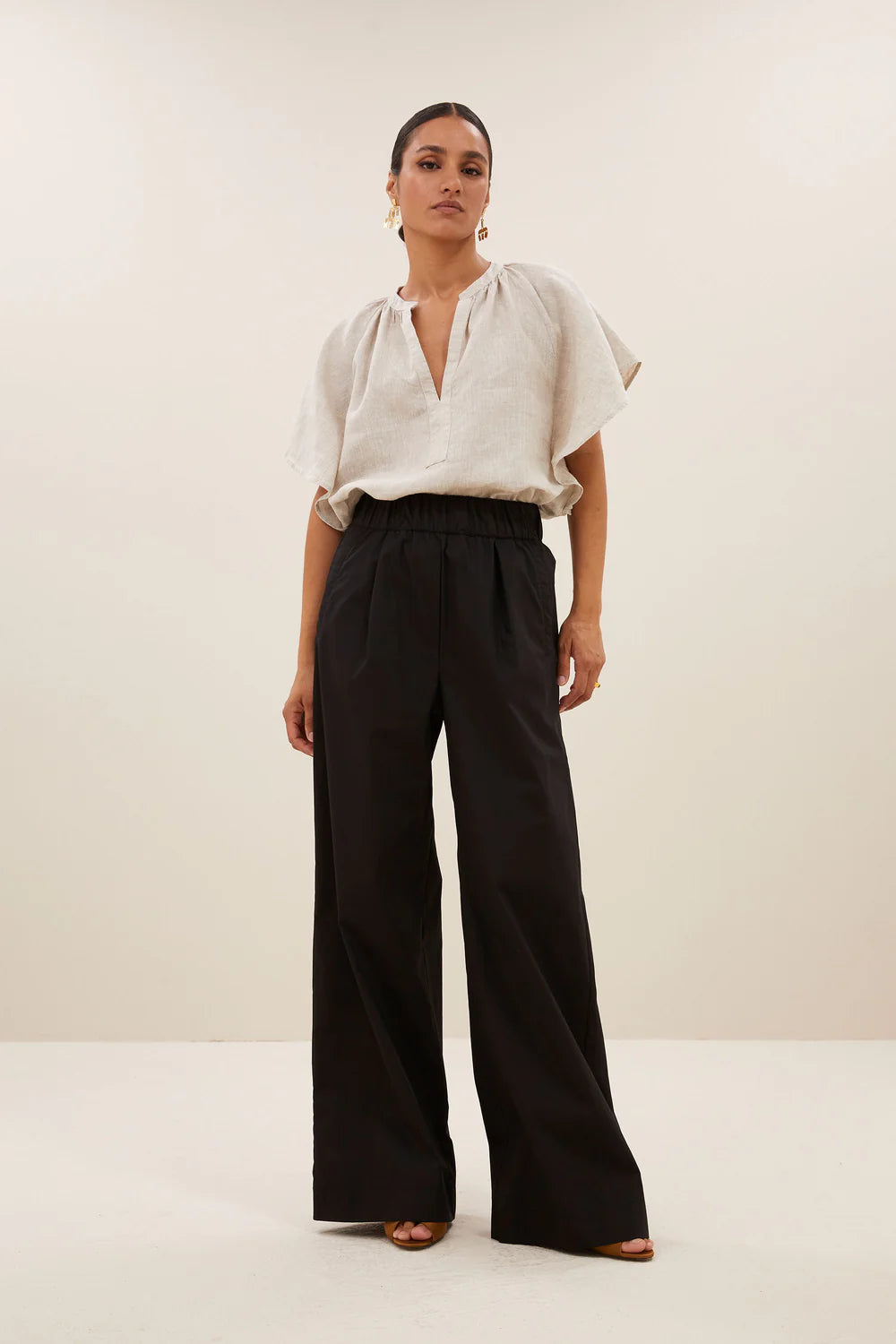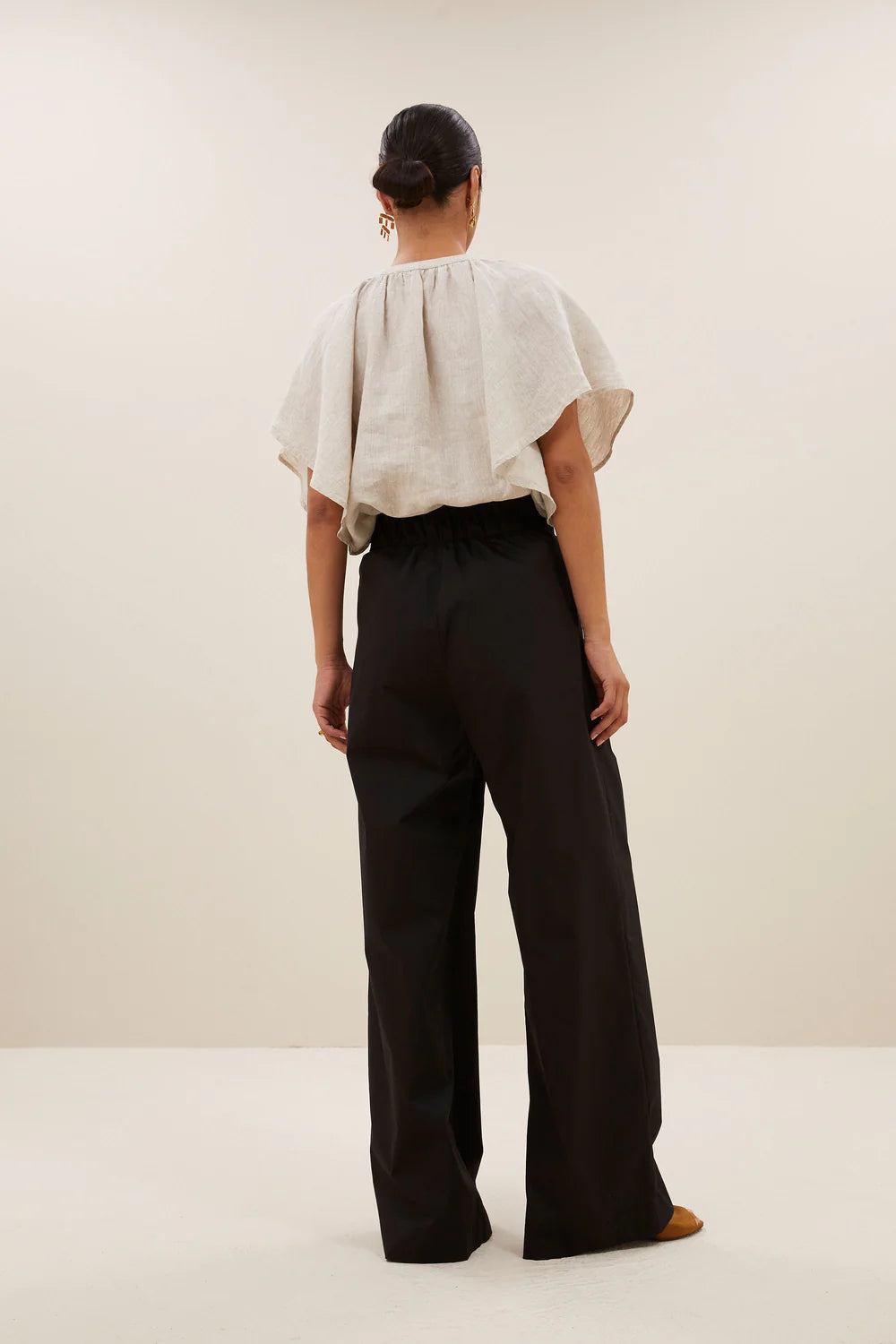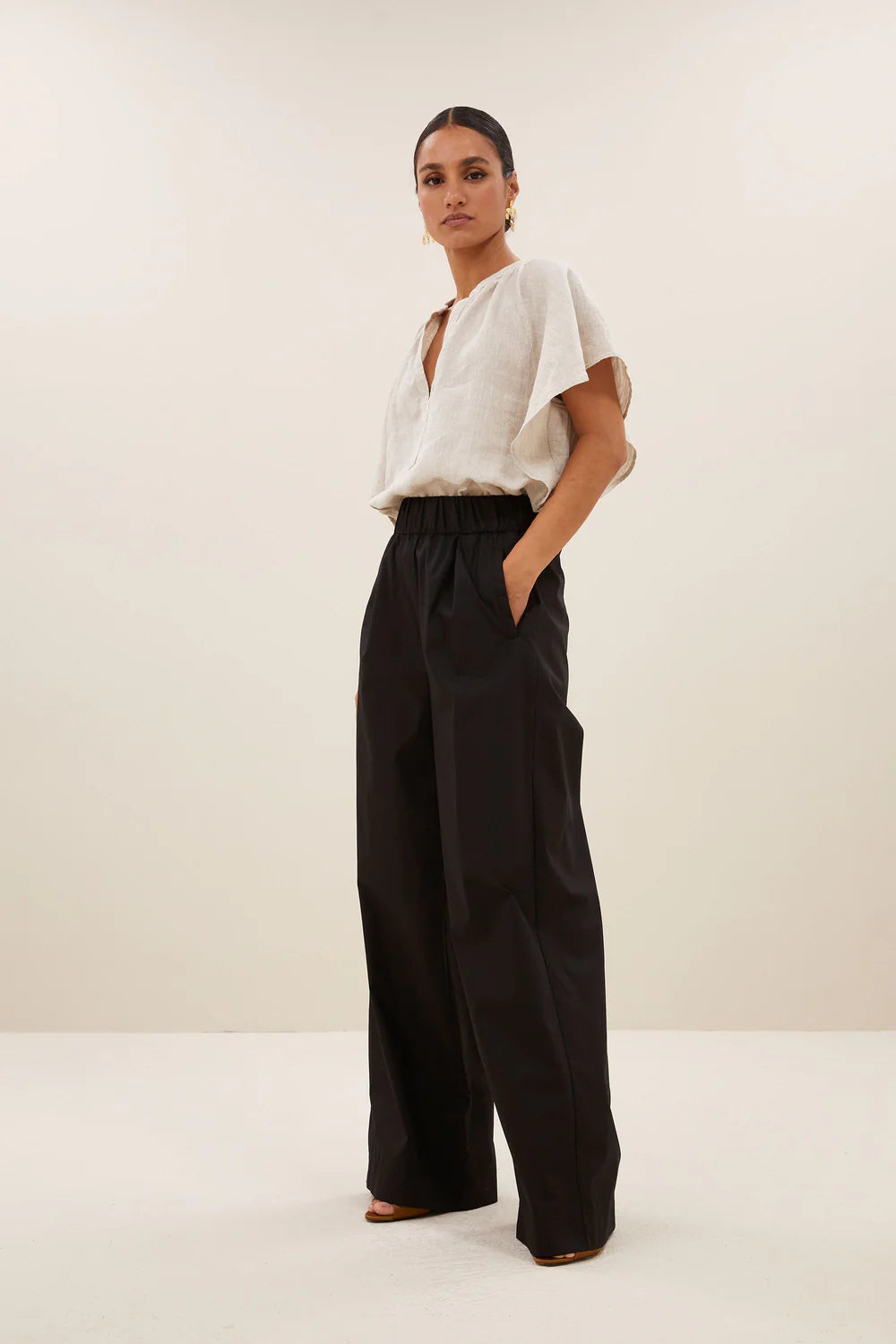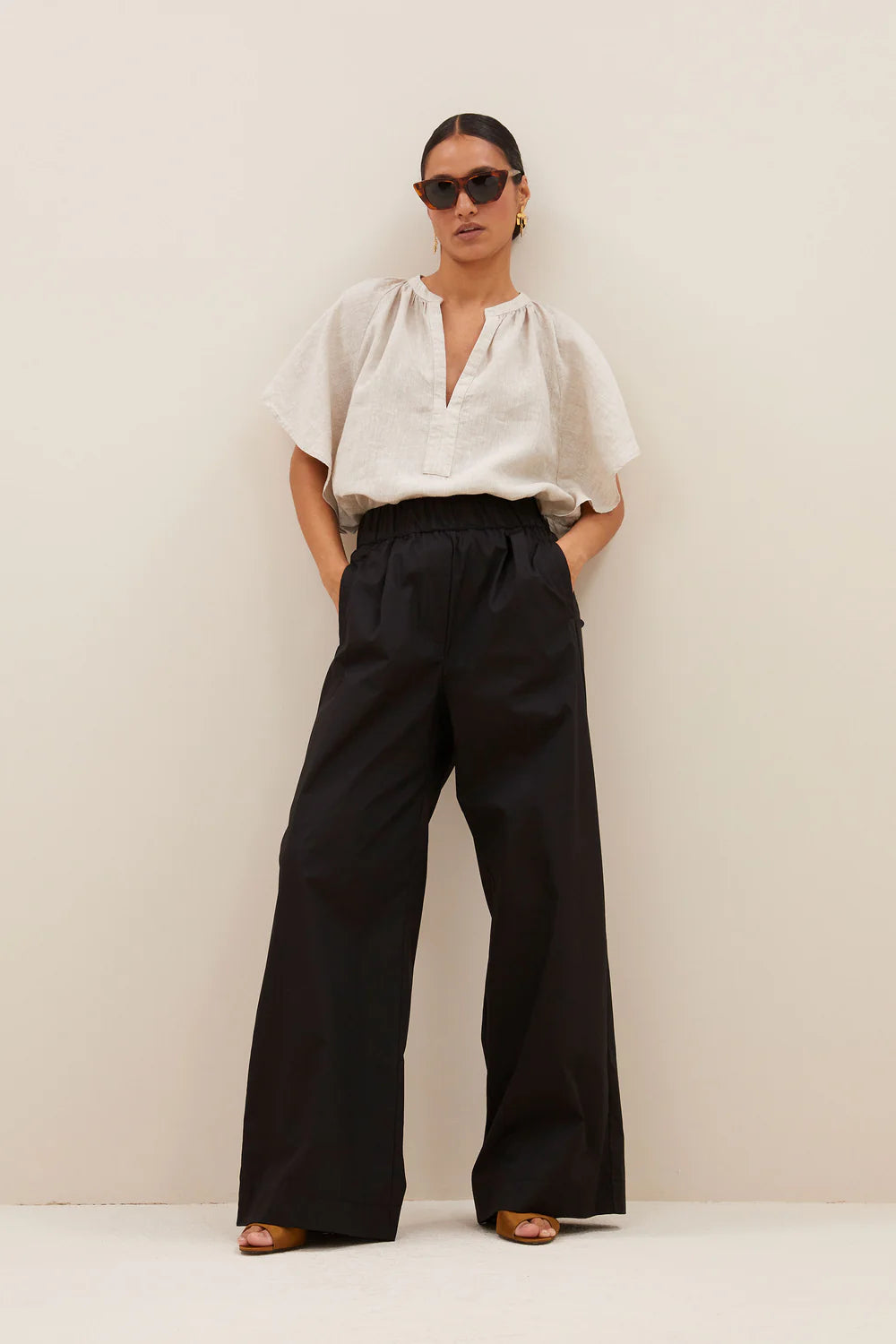 Your favourite trousers are back! And this time in a classic and timeless black. With a high waist and elastic waistband, these pants have a wide leg fit for everyday wear. Pair with a simple tee or a statement blouse.