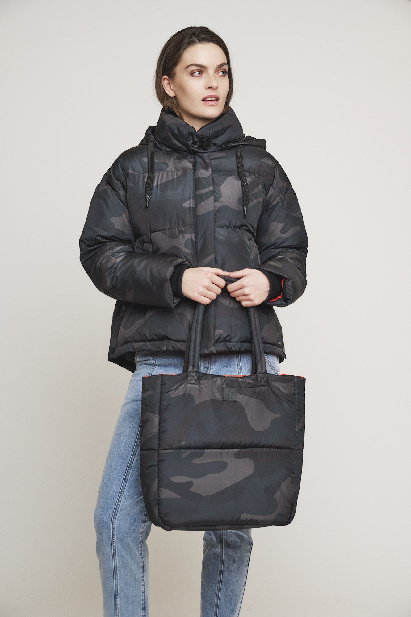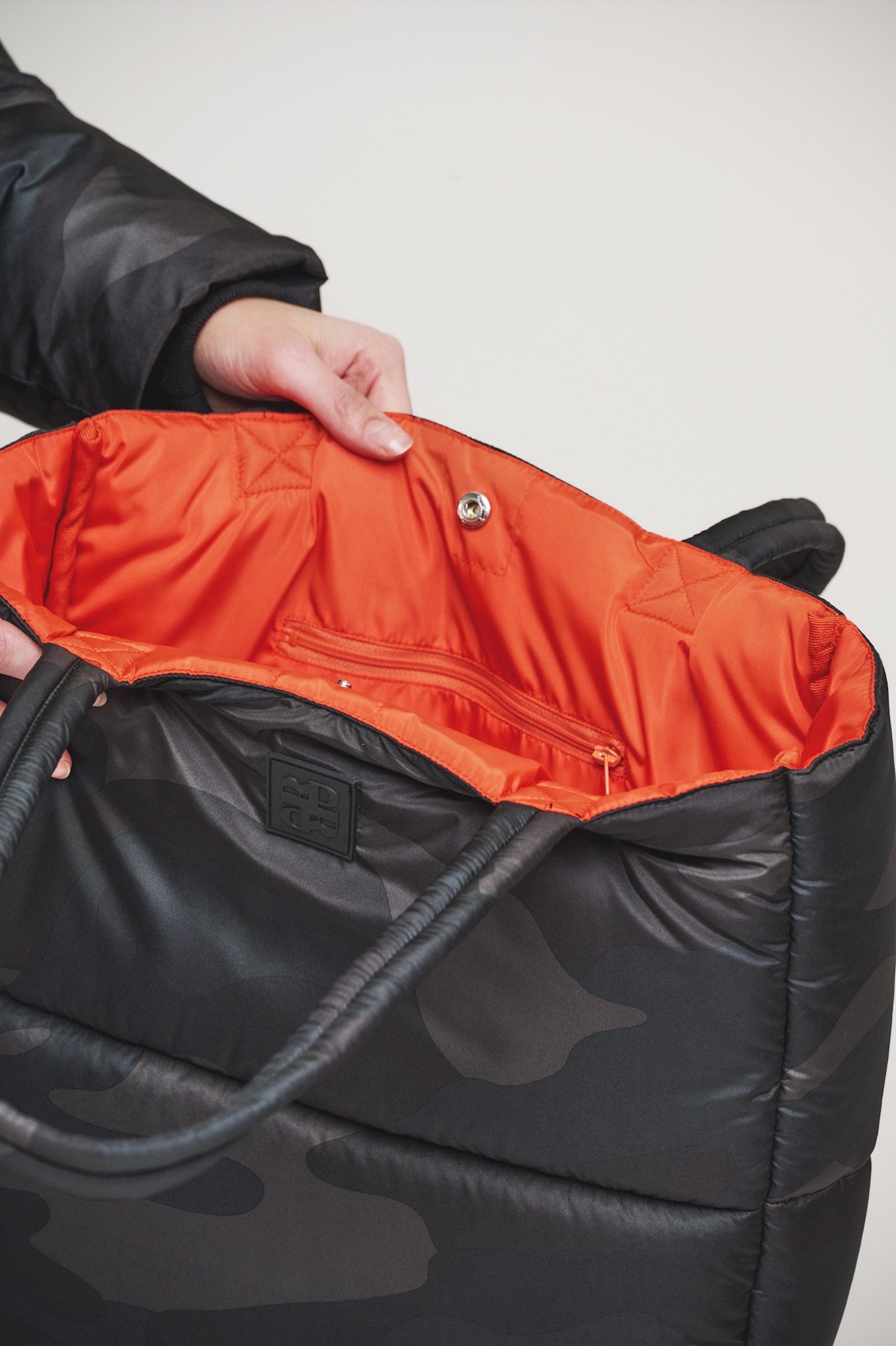 Sleek and stylish, the Bien Shopper Bag in Dark Green Camo is perfect for winter days out. Its classic camo design adds a touch of edge while the flash of orange lining adds a pop of colour. Stay on trend with this must-have accessory.