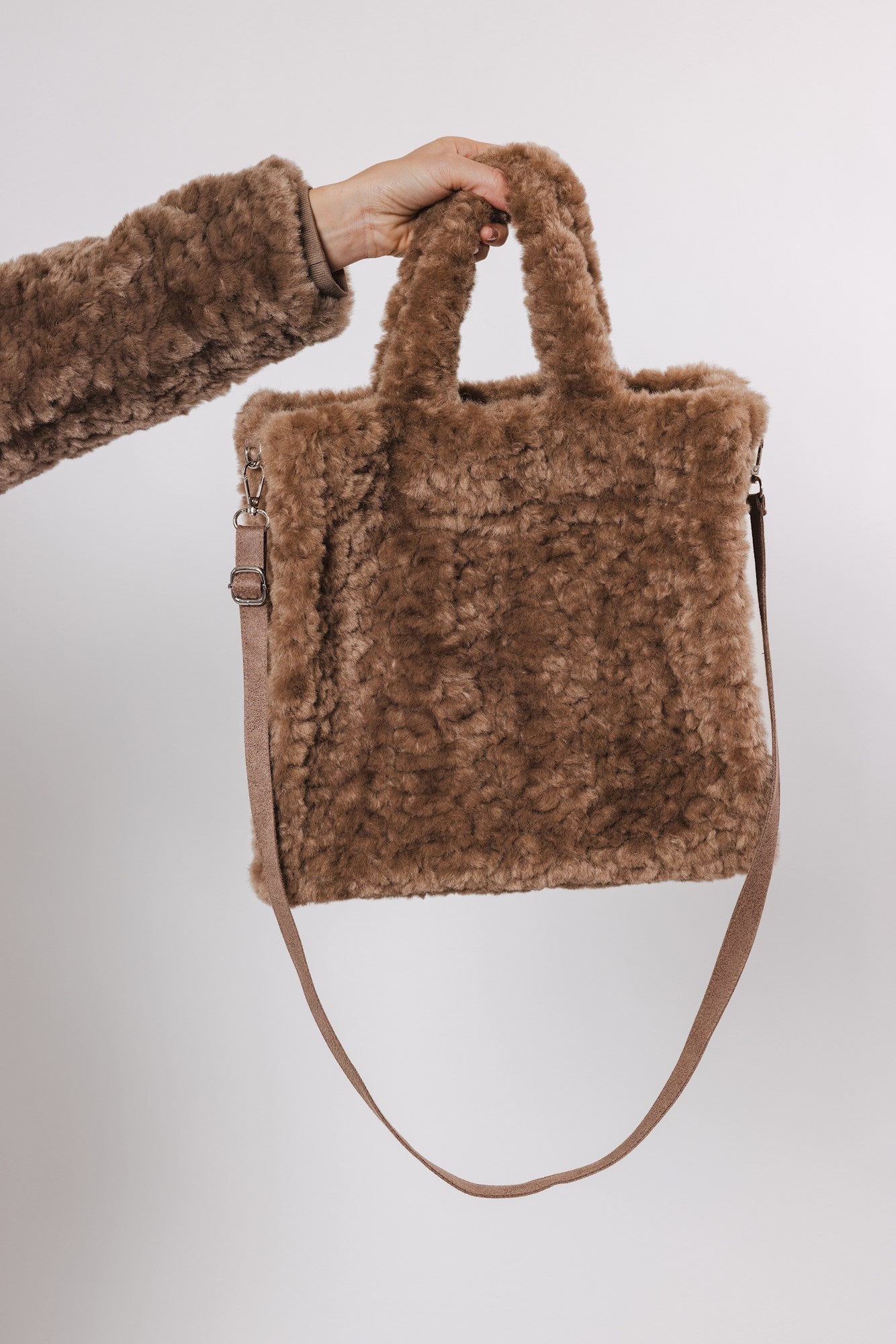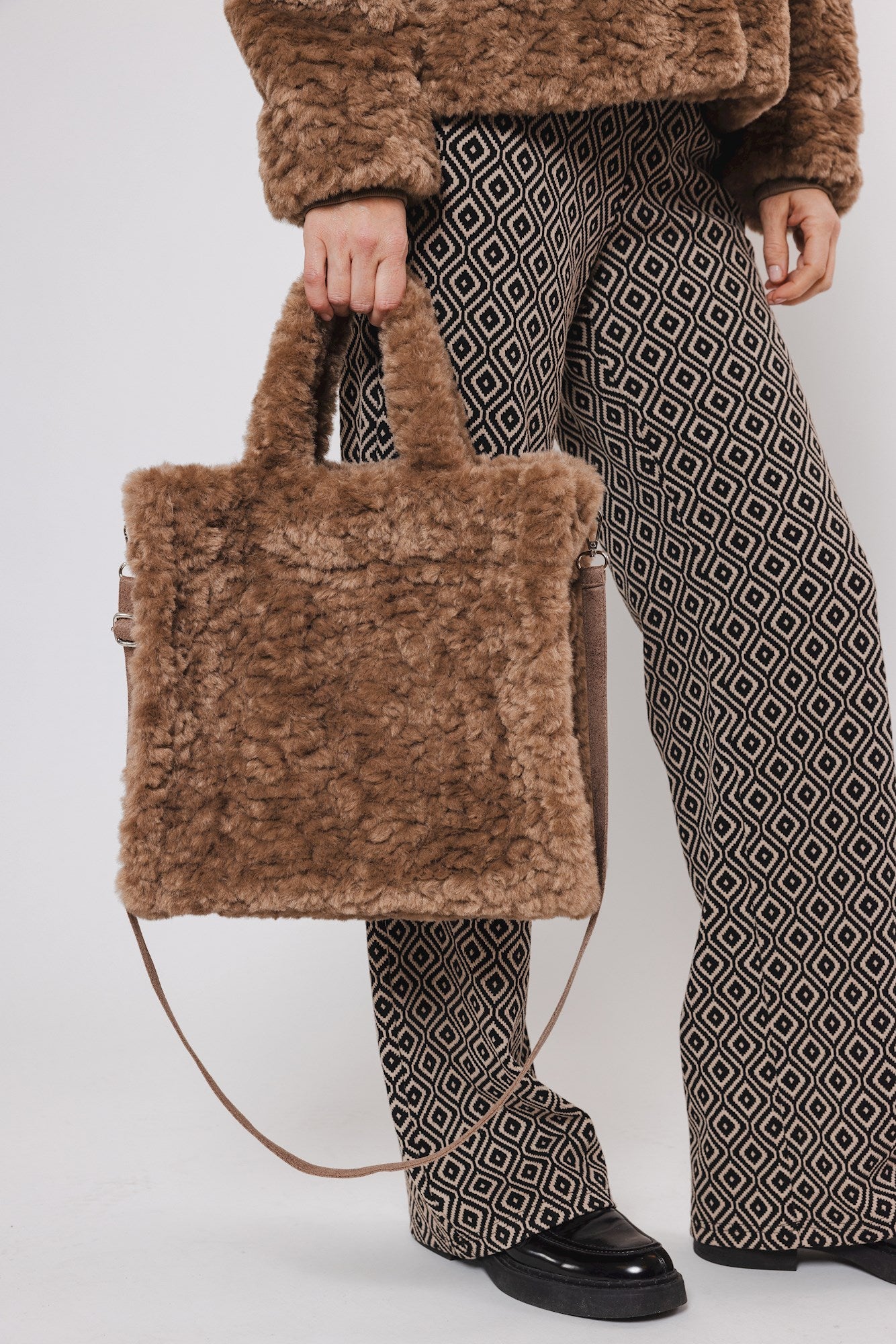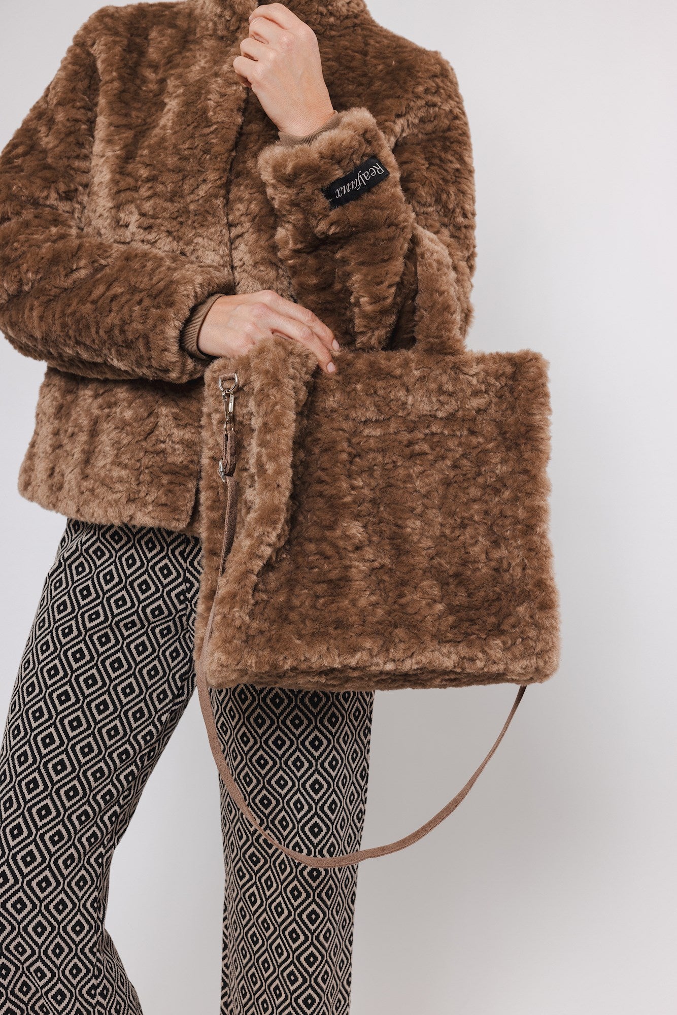 Elevate your style with our fashionable Brax Shopper Bag in Beige. Made with structured faux fur, it features a convenient zipper closure and a small pocket for all your essentials. Perfect for any occasion, this bag is sure to add a touch of chic to your wardrobe.