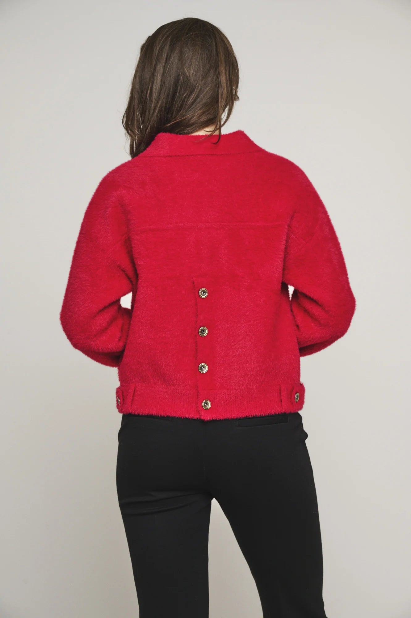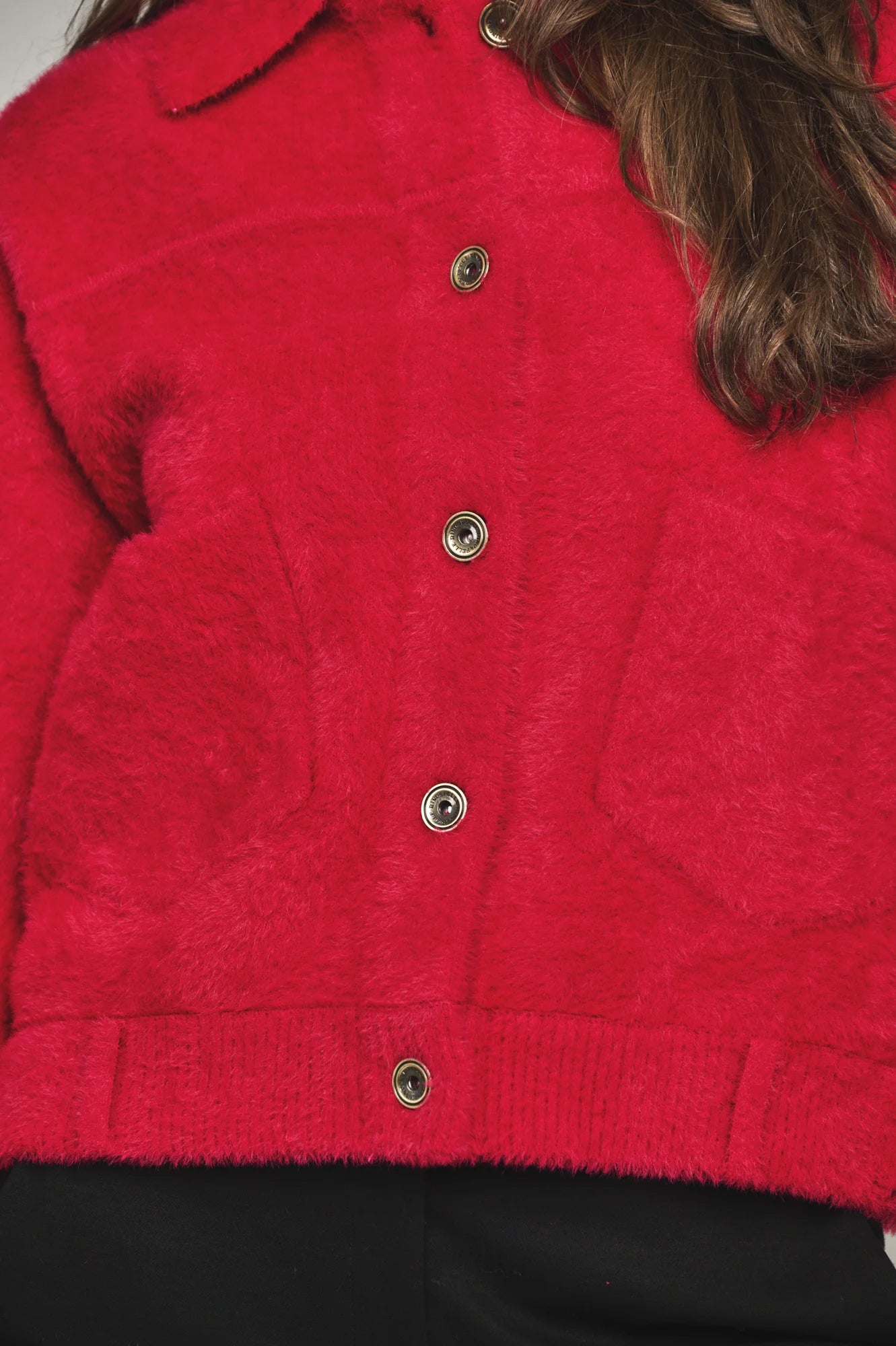 In this season's must have colour, this jacket is a shorter, easy to style piece, perfect for adding a flash of colour to any outfit. Made from the softest plush material, this boxy style layer is a modern twist on your winter coat.