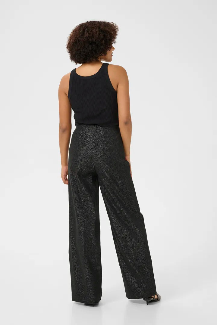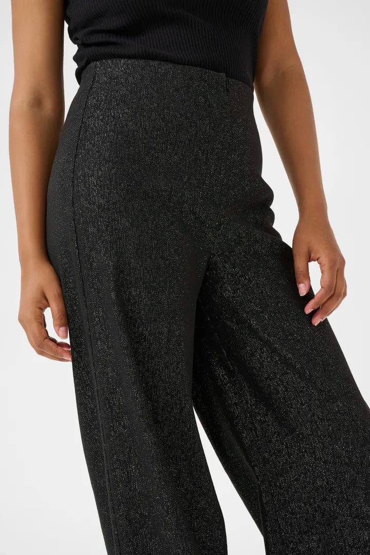 Add some sparkle to your look with these wide leg trousers, fit for any party or night event. Simply pair these trousers with a knitted pullover or fun blouse and your favourite heels and dance all night long!