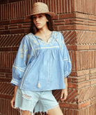 With an intricate embroidered design, and effortlessly elegant shape, this blouse from Rose and Rose is pure luxury. Easy to style with any summer basics, you can dress this blouse up after a day on the beach with white trousers and gold sandals. There is nothing more suitable for a glamorous vacation.