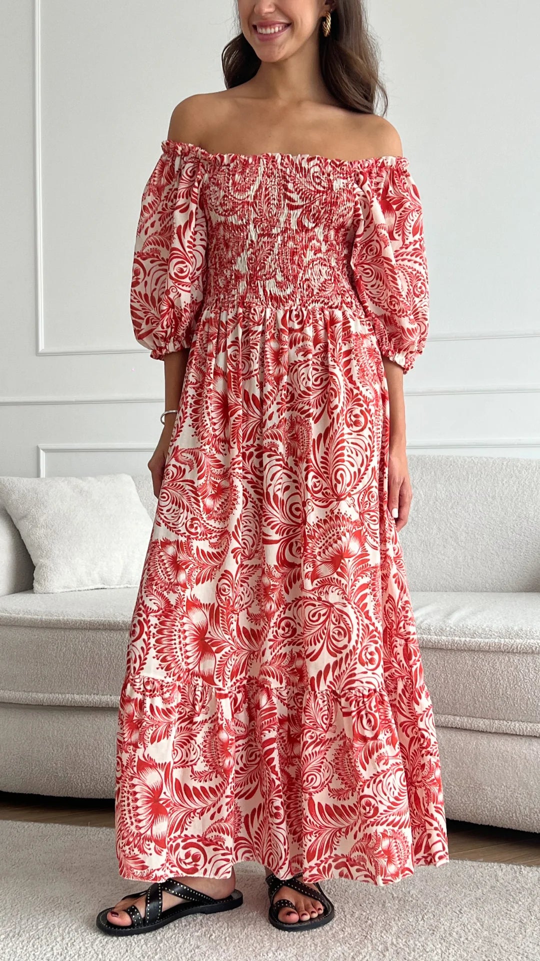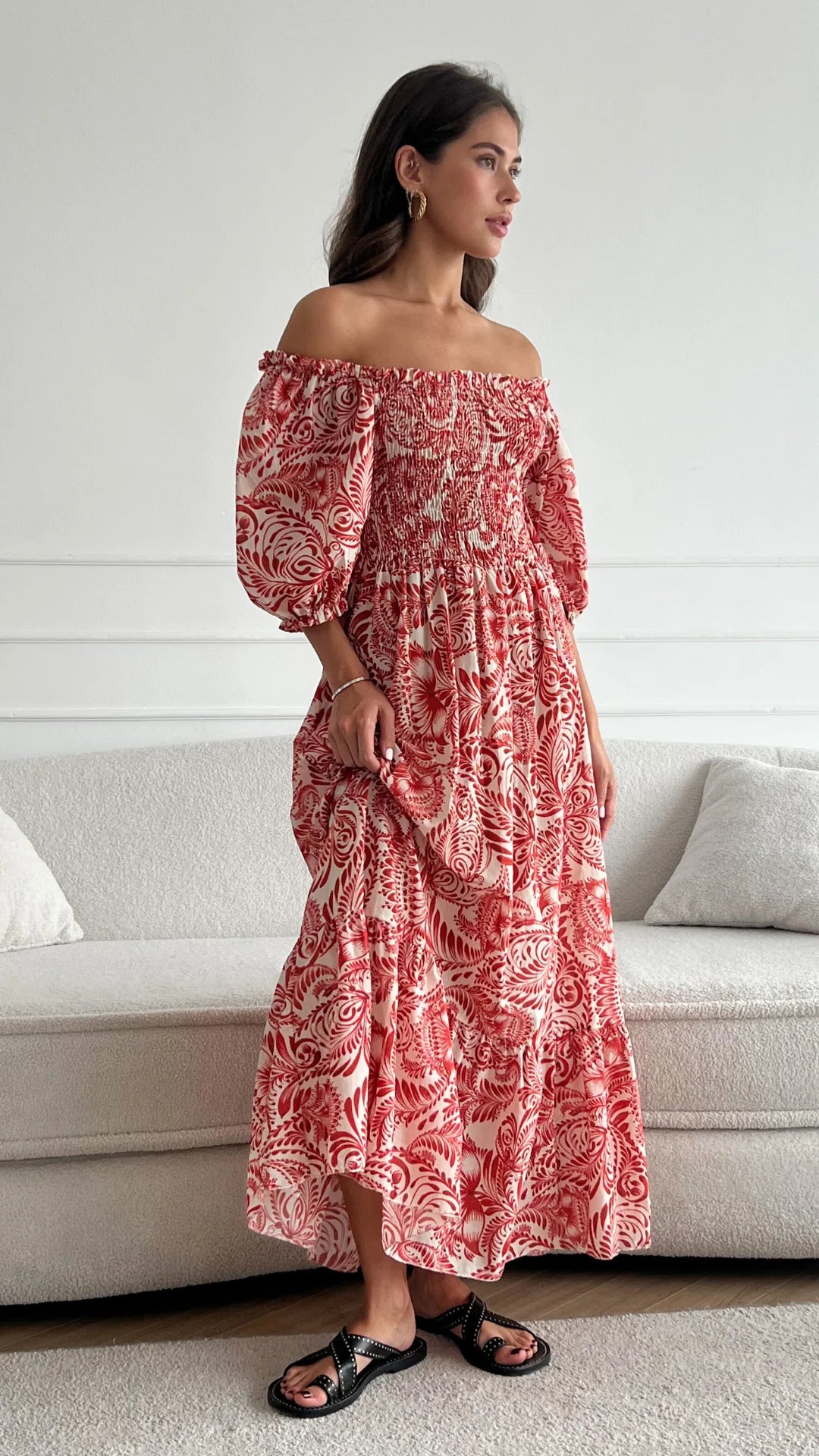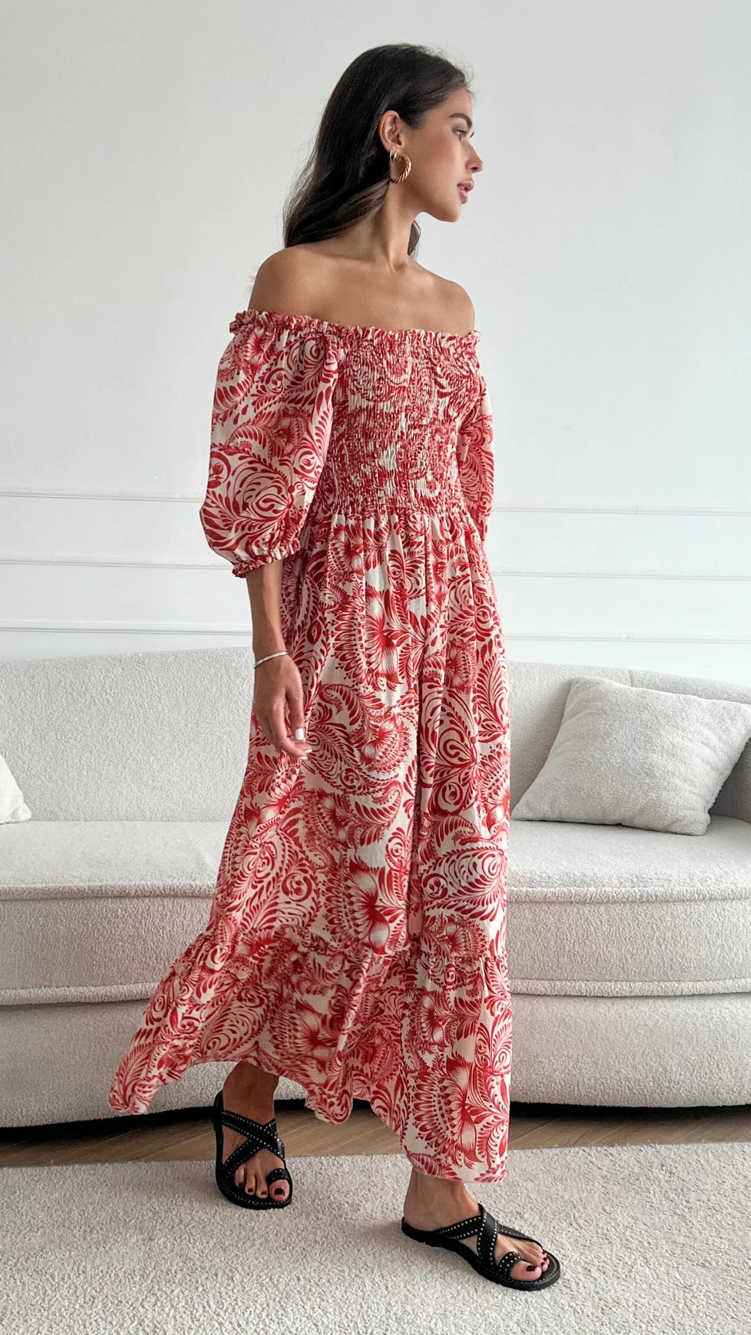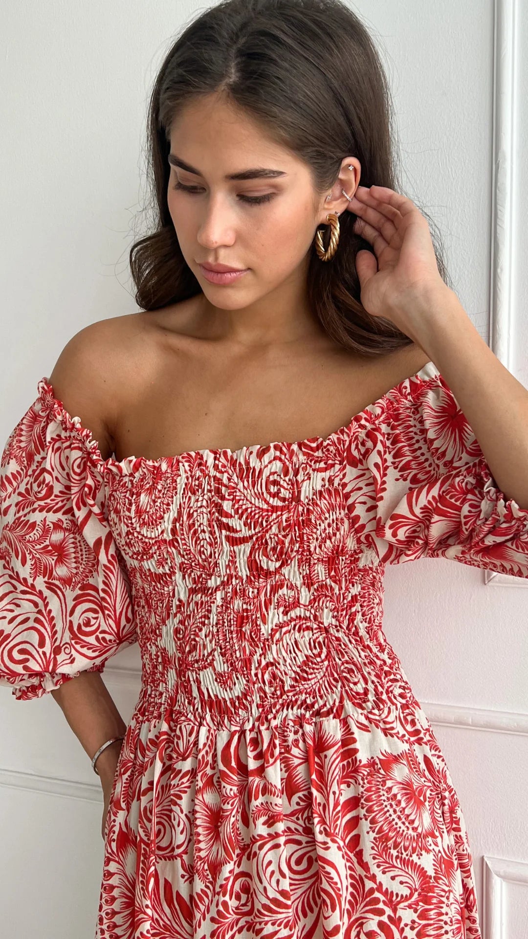 Make a statement with this playful dress and channel your flirty feminine fun. With a shirred body, this dress is the perfect option for hot days in the sun, the elasticated feeling will keep you comfortable all summer long. We love how you can transform your look simply by pulling this dress off the shoulders!