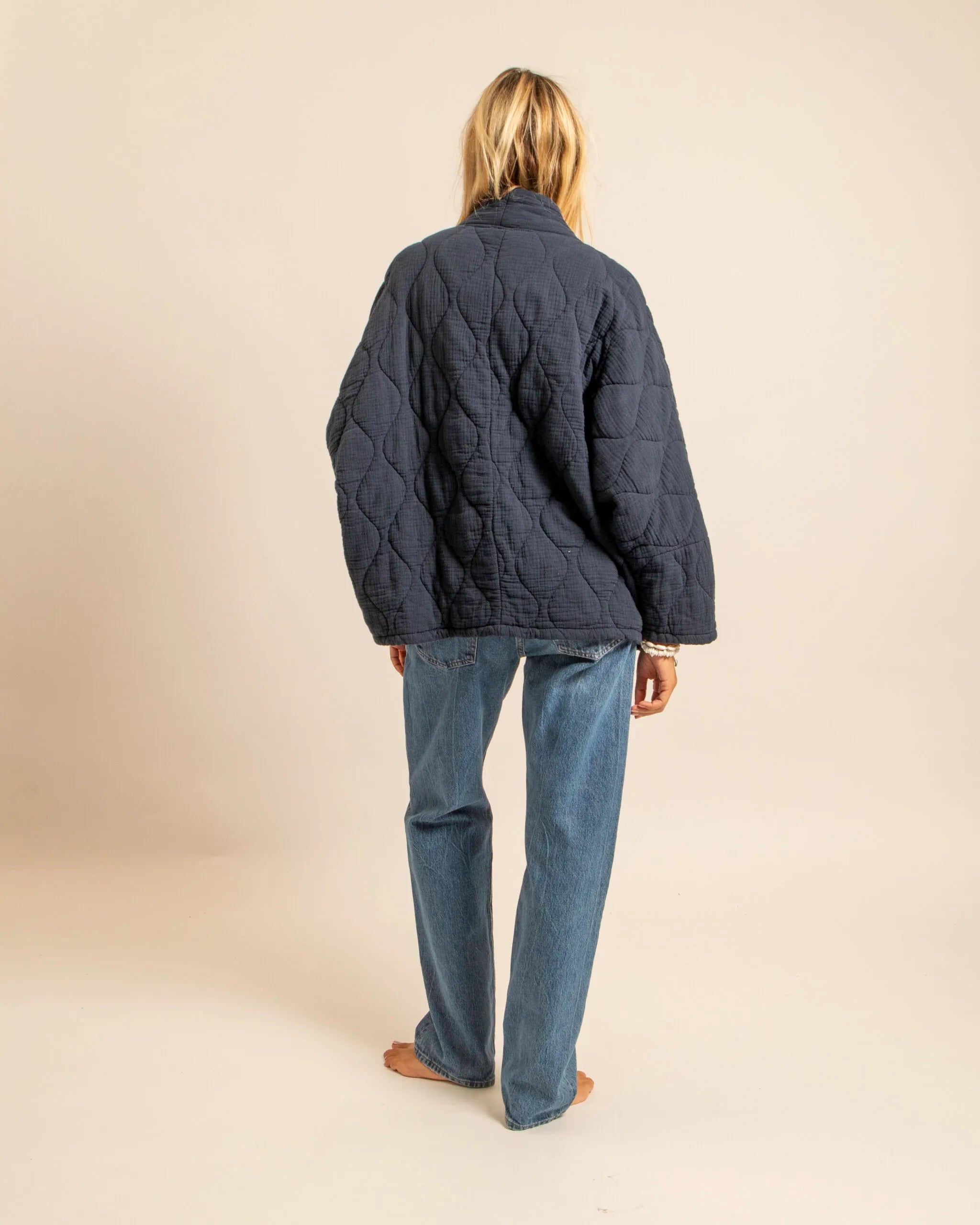 Perfect for a fashionable look, this jacket offers an effortlessly comfortable fit with a soft, cheesecloth cotton feel. Complete with an open finish, large patch pockets, and a stylish quilted design, this jacket is an autumn essential for layering over knitted jumpers.