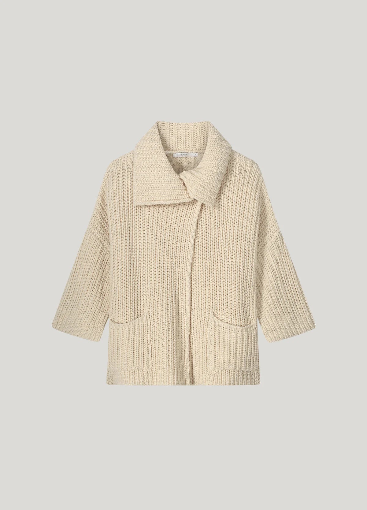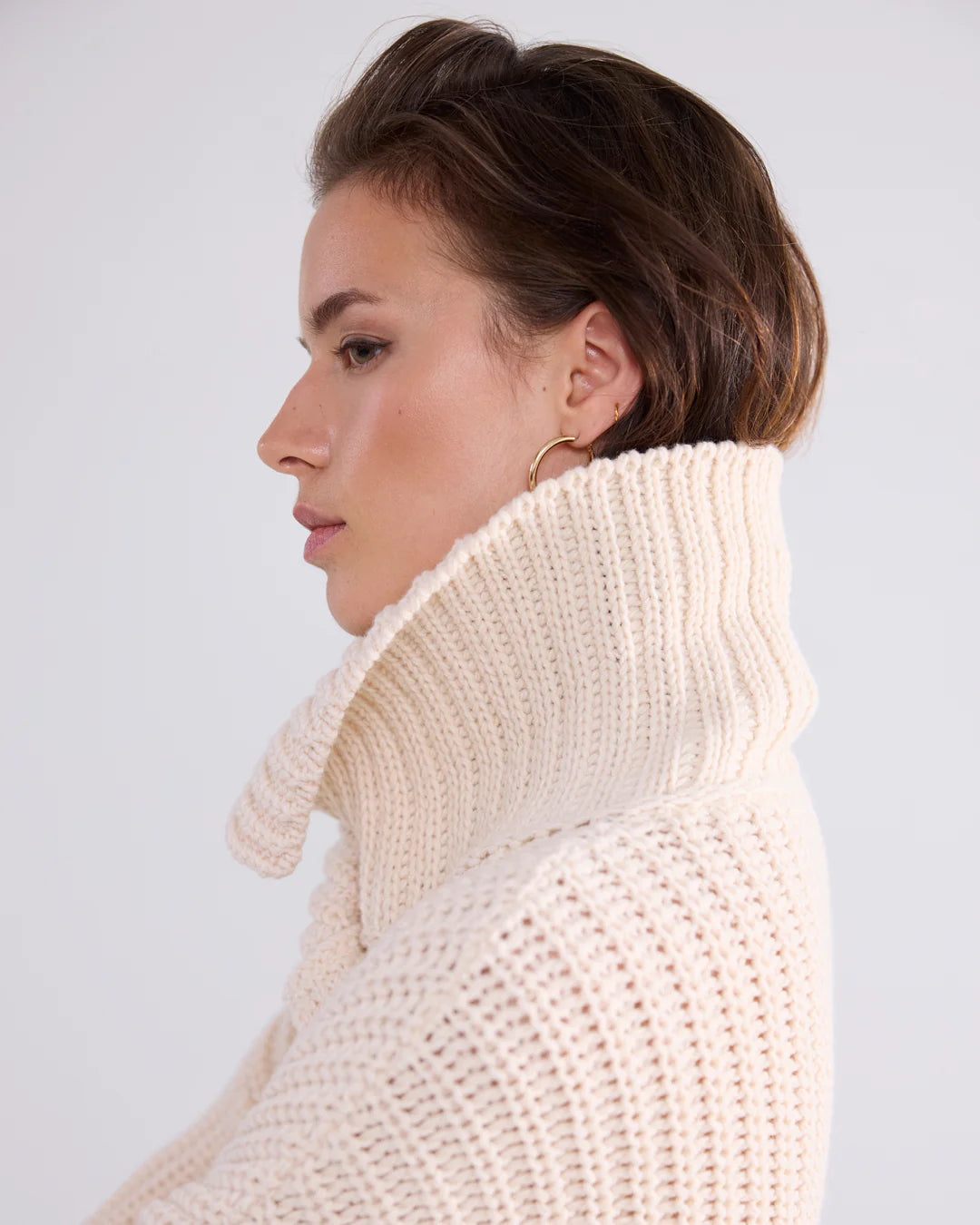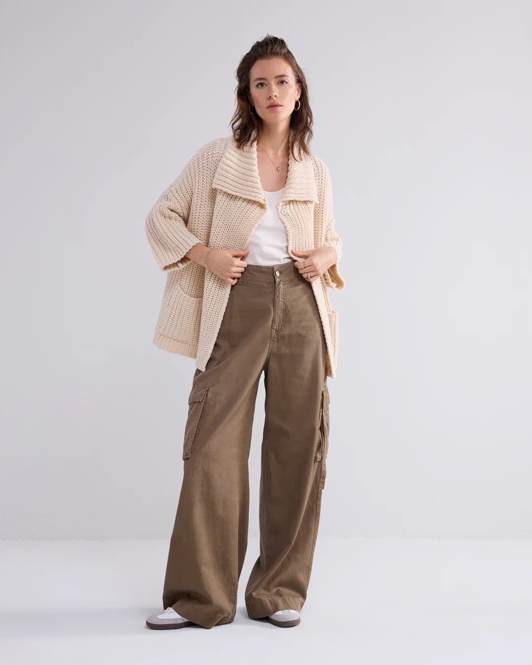 This knitted merino cardigan features a timeless design with press studs under the collar. The chunky knitted design and 3/4 length sleeves make this an ideal layer for cosy days in or casual days out!