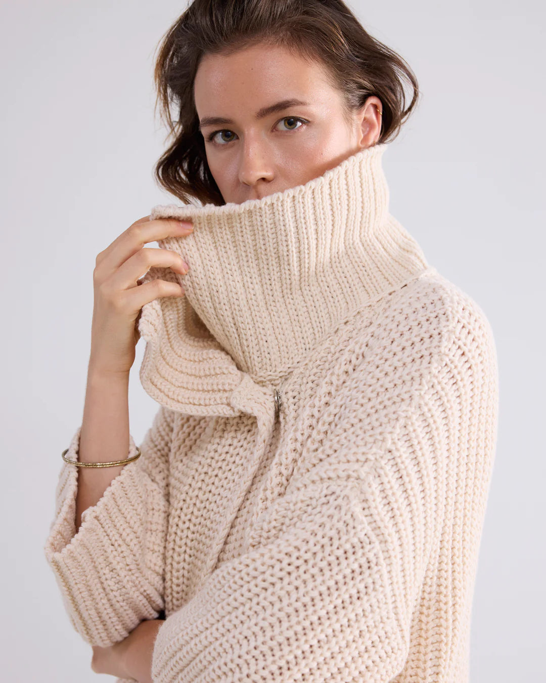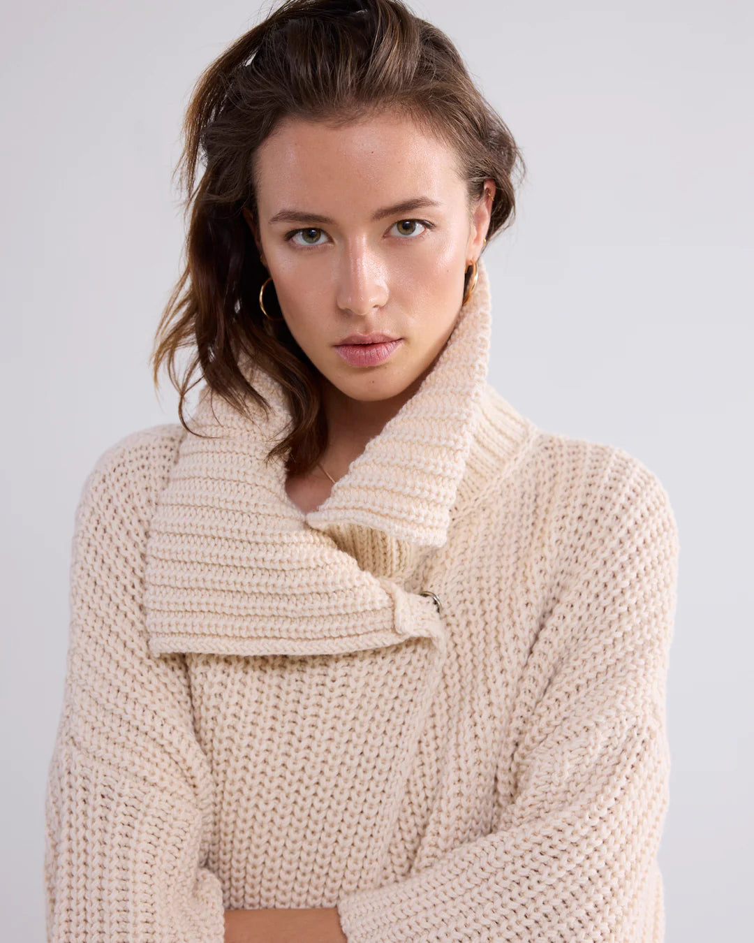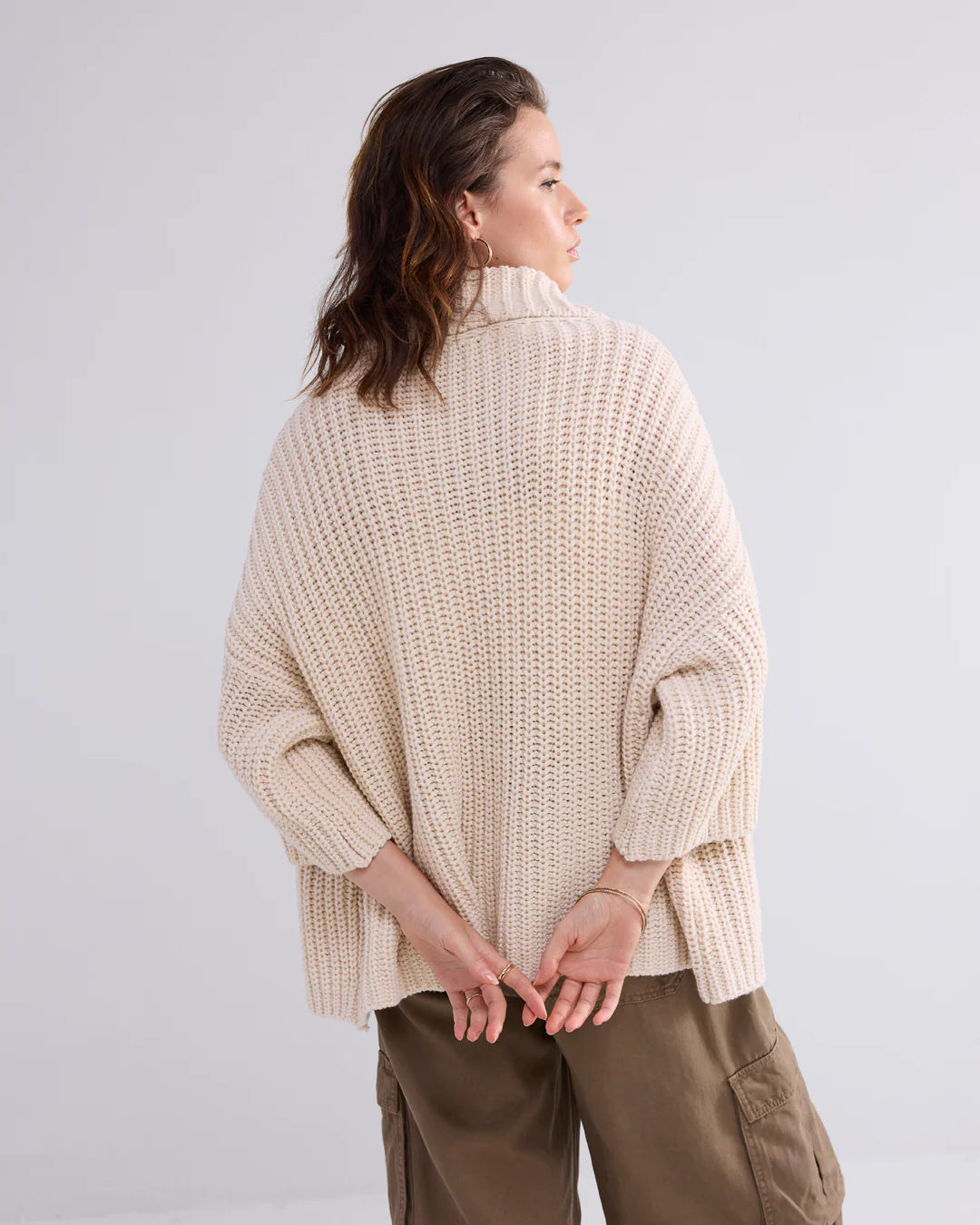 This knitted merino cardigan features a timeless design with press studs under the collar. The chunky knitted design and 3/4 length sleeves make this an ideal layer for cosy days in or casual days out!