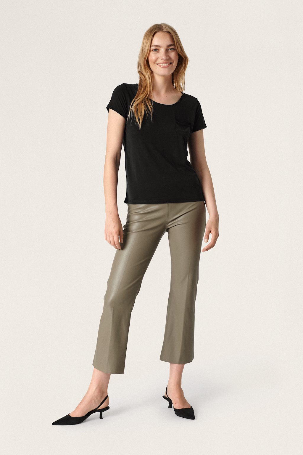 Elevate your wardrobe with our fashionable Columbine Crew-Neck T-Shirt. This essential piece features a classic t-shirt style, round neckline, and short sleeves for a versatile look. The pocket on the chest adds functionality while the ribbing on the neck and normal fit provide comfort. Perfect for layering and effortlessly chic.