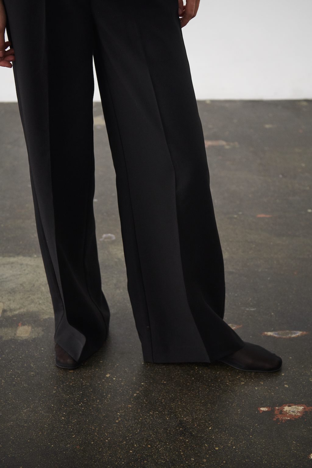 These fashionable pants feature stretchy fabric for a comfortable fit, a convenient zipper and button closure, and pleated details for added flair. The wide-leg design creates a flattering silhouette, making these pants a perfect addition to any wardrobe and the ideal piece for workwear.