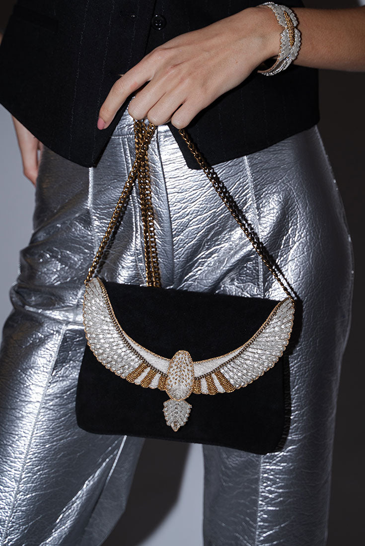 This bag is a perfect mix of elegant and practicality. With statement beading and applique details, this bag is a beautiful way to add a twist to a classic look.