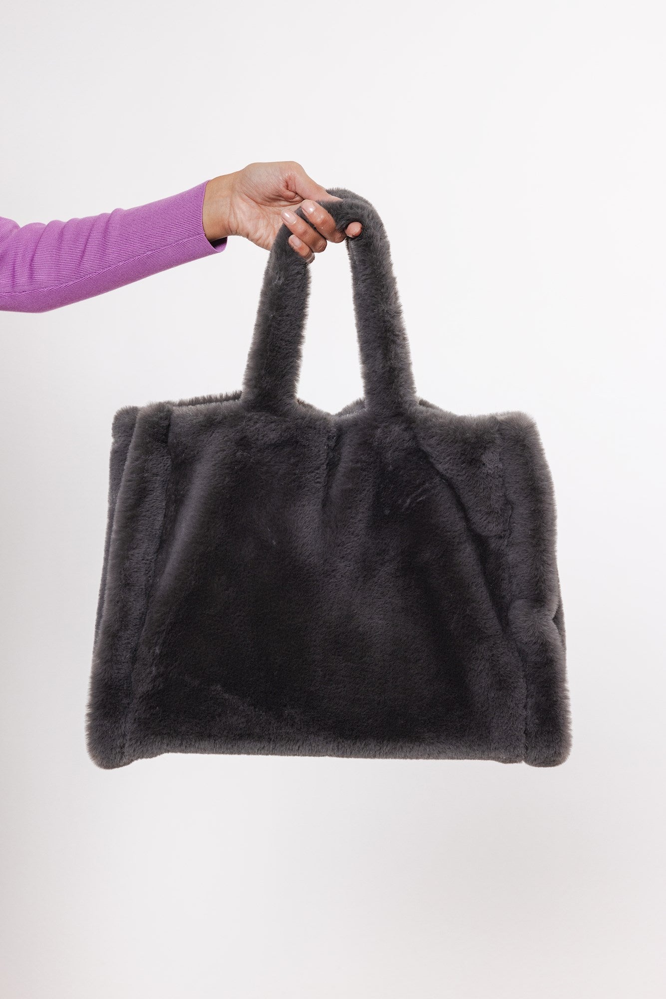 Featuring a classic shopper design with top handles, this bag is designed to enhance your outfit. The faux fur and oversized shape add a touch of luxury, making it a must-have for any fashion-forward individual this winter
