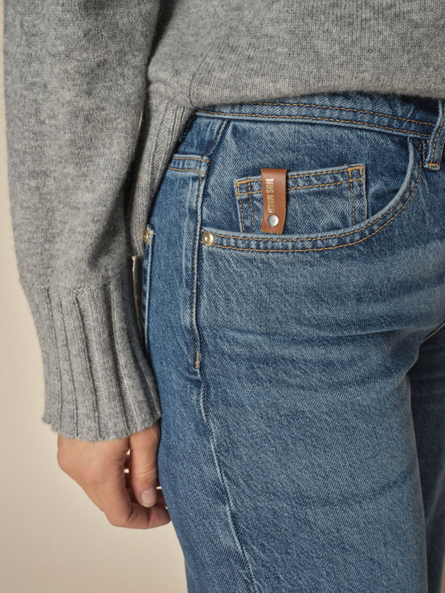 These super stylish jeans will become your favourite pair. With a wide-leg fit and high-rise style, these jeans give you the most flattering silhouette, perfect for those who want to venture into a wide-leg style. With a vintage blue wash, they can be paired with a classic tee for a casual look, or your favourite blouse for an evening look.