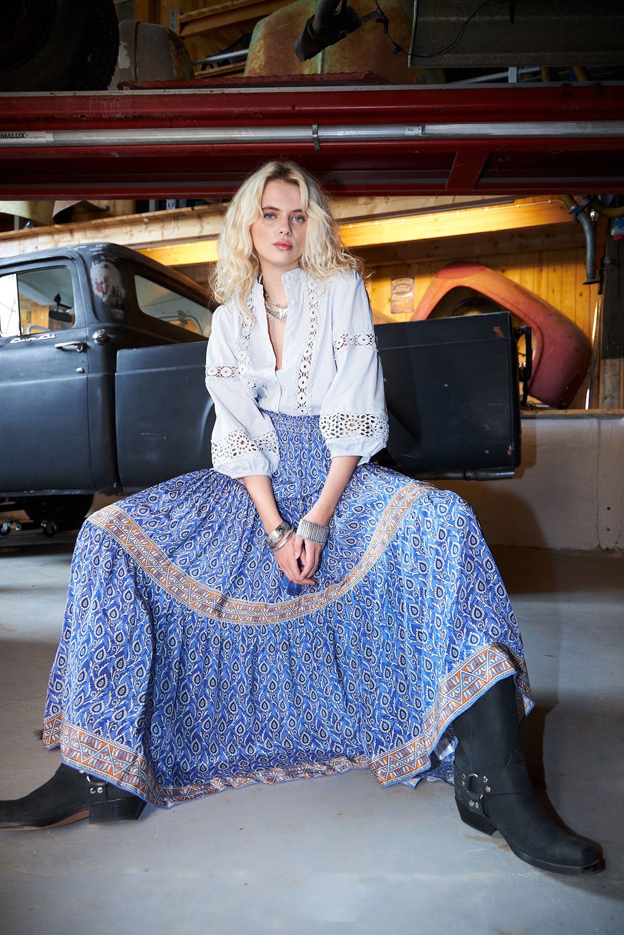 This skirt will be your favourite outfit for the summer. In a maxi length with a beautiful floaty movement, you can style this skirt with a simple vest or white tee for days on the beach. Perfect for hot weather, the breathable cotton material and elastic waistband will keep you comfortable all day.