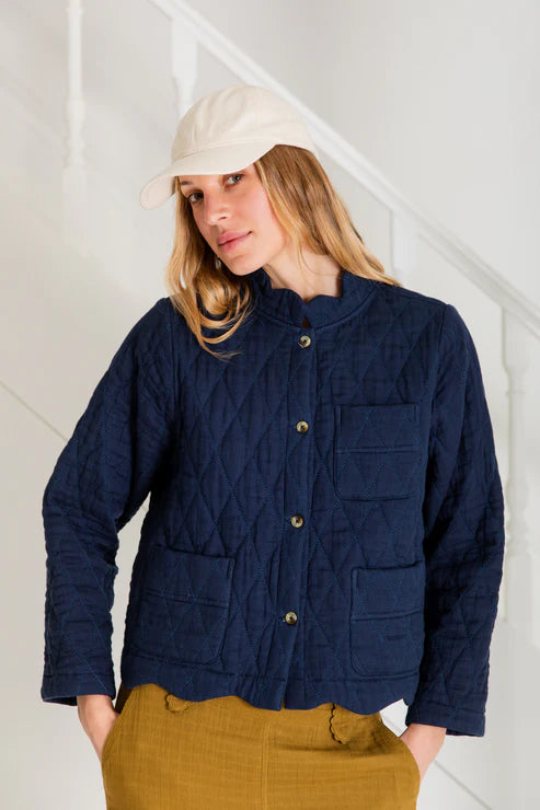No spring wardrobe is complete without a chic quilted jacket. For days when you need that extra layer, this versatile utility inspired jacket is the perfect finish to any outfit. With a beautiful scalloped detail at the hem and neck, this jacket has a feminine touch to it and looks particularly beautiful with a pair of wide leg white jeans.