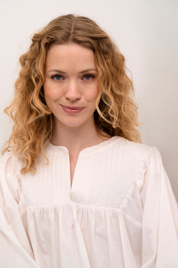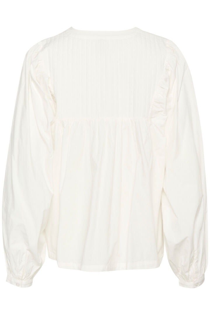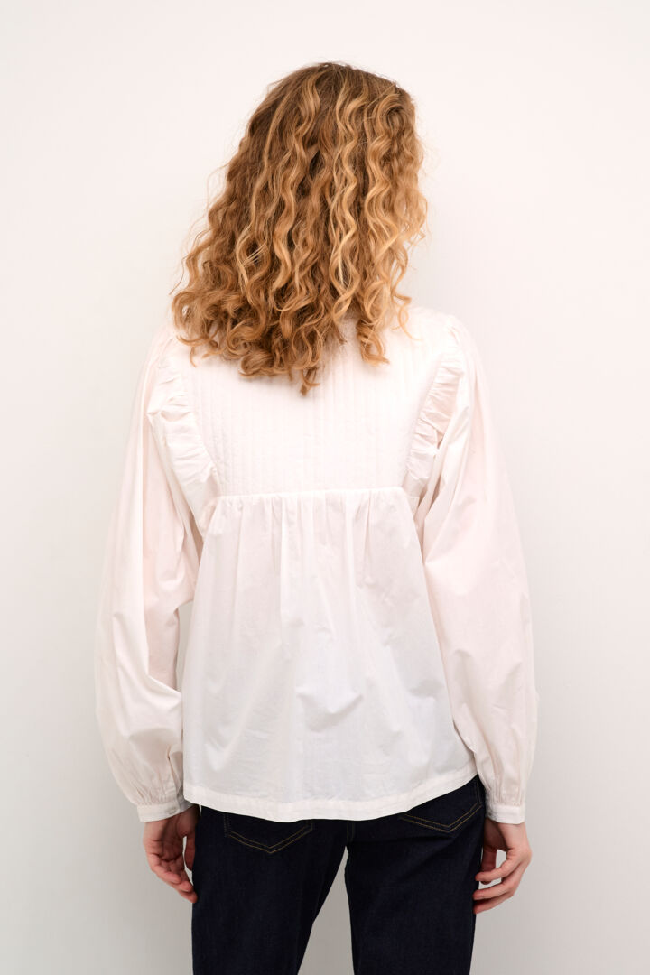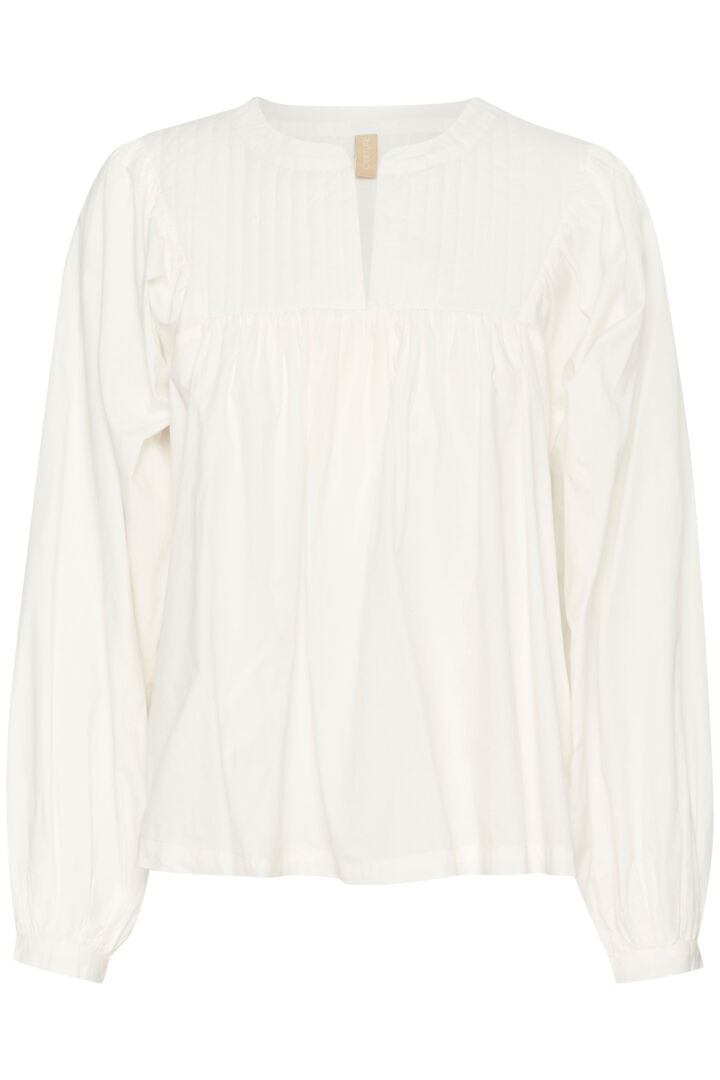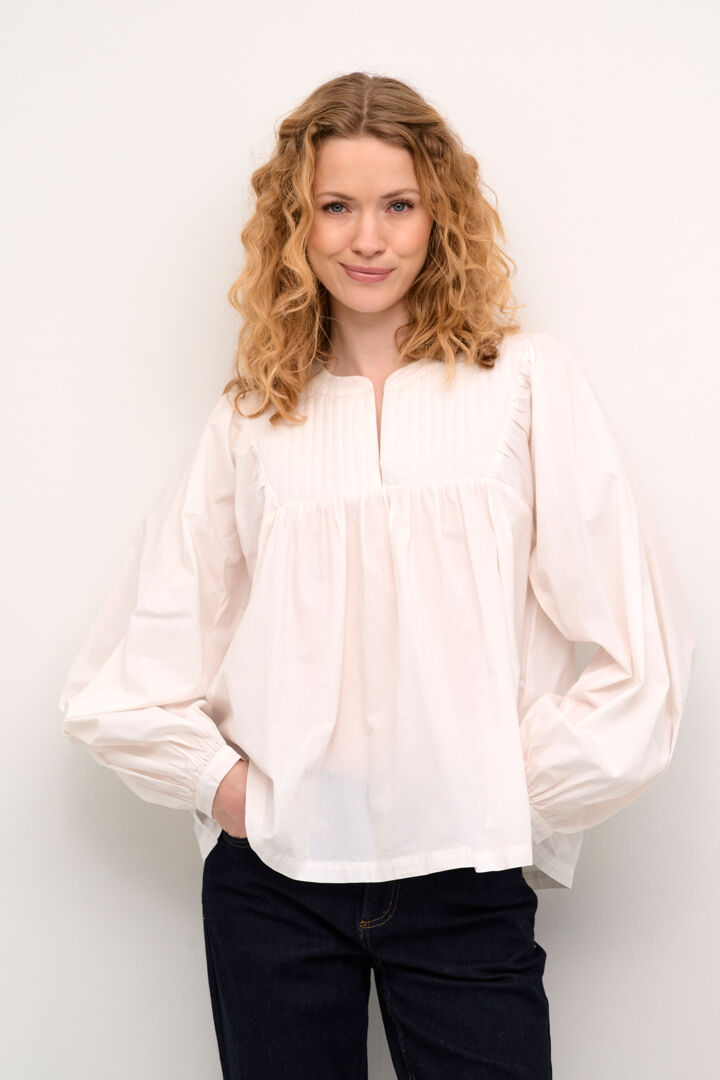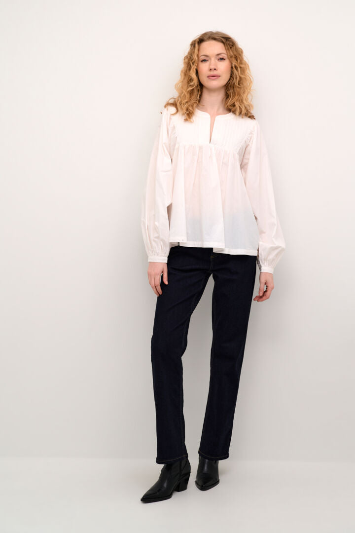 Crafted from 100% cotton, this blouse features puffy sleeves, a keyhole neck, and yoke details for a feminine touch. The draped effect adds an effortless charm, making it a must-have for any versatile wardrobe.