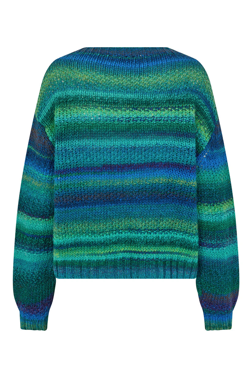 This classic comfy knit is an eye-catching choice for the autumn and winter. With a green and blue colourway, this simple shape knit is taken to another unique level, keeping your winter outfits special and different. Simply pair with jeans and pumps for an everyday look or layer over a plain dress for autumn days out.