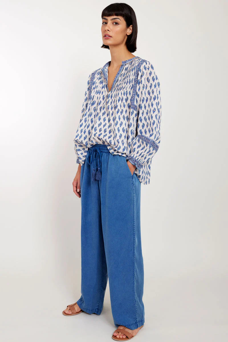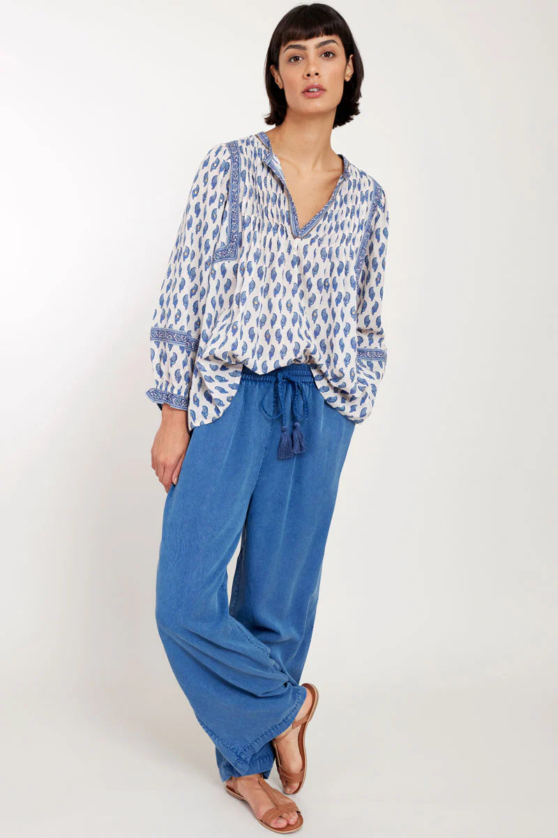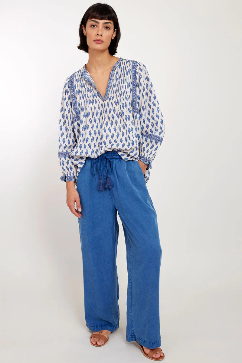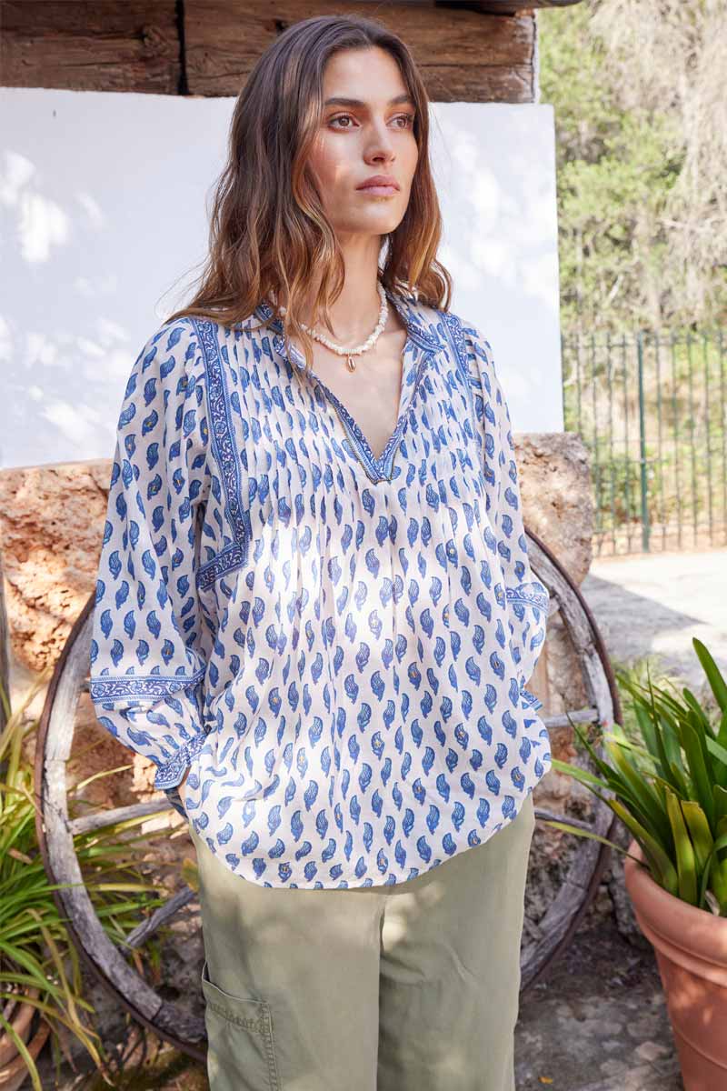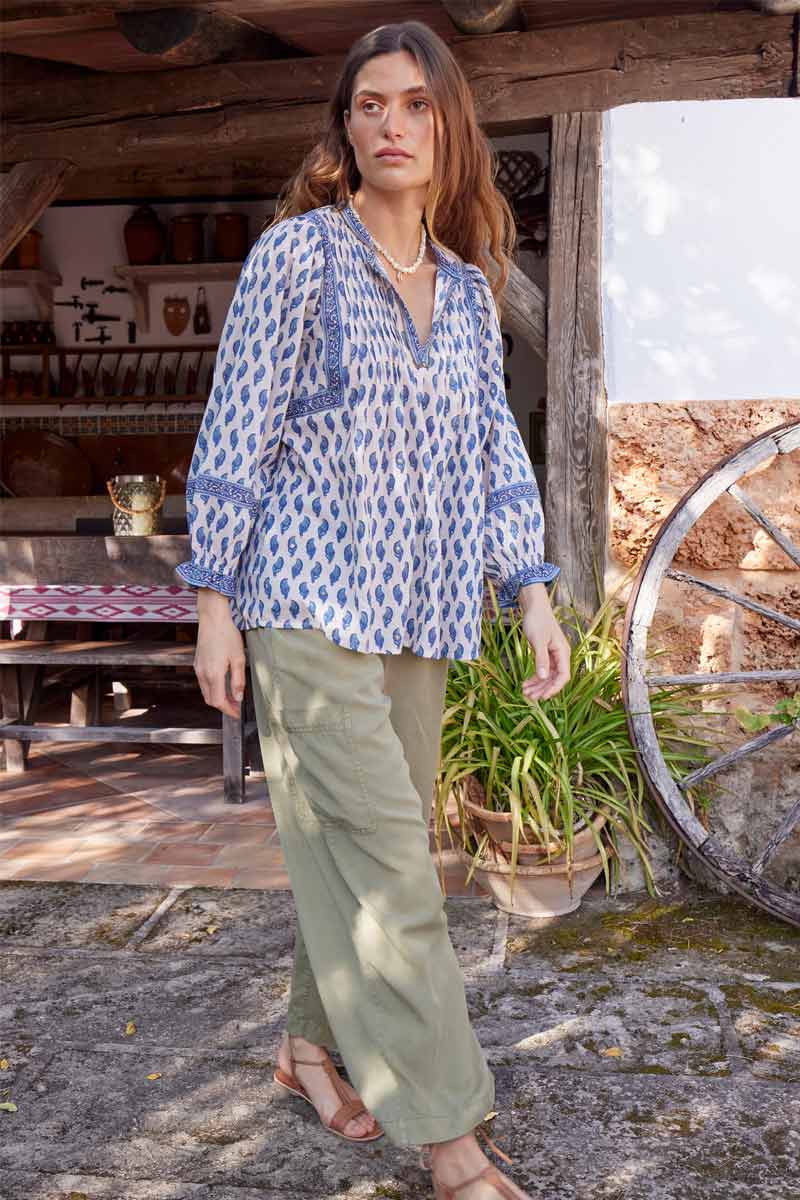Made from soft organic cotton, this printed top features stunning beading details and delicate bronze sequins to catch the summer light. With a relaxed fit, this blouse is elegantly effortless, perfect for hot days in the sun. Pair with your jeans or light linen trousers for casual everyday outfits.