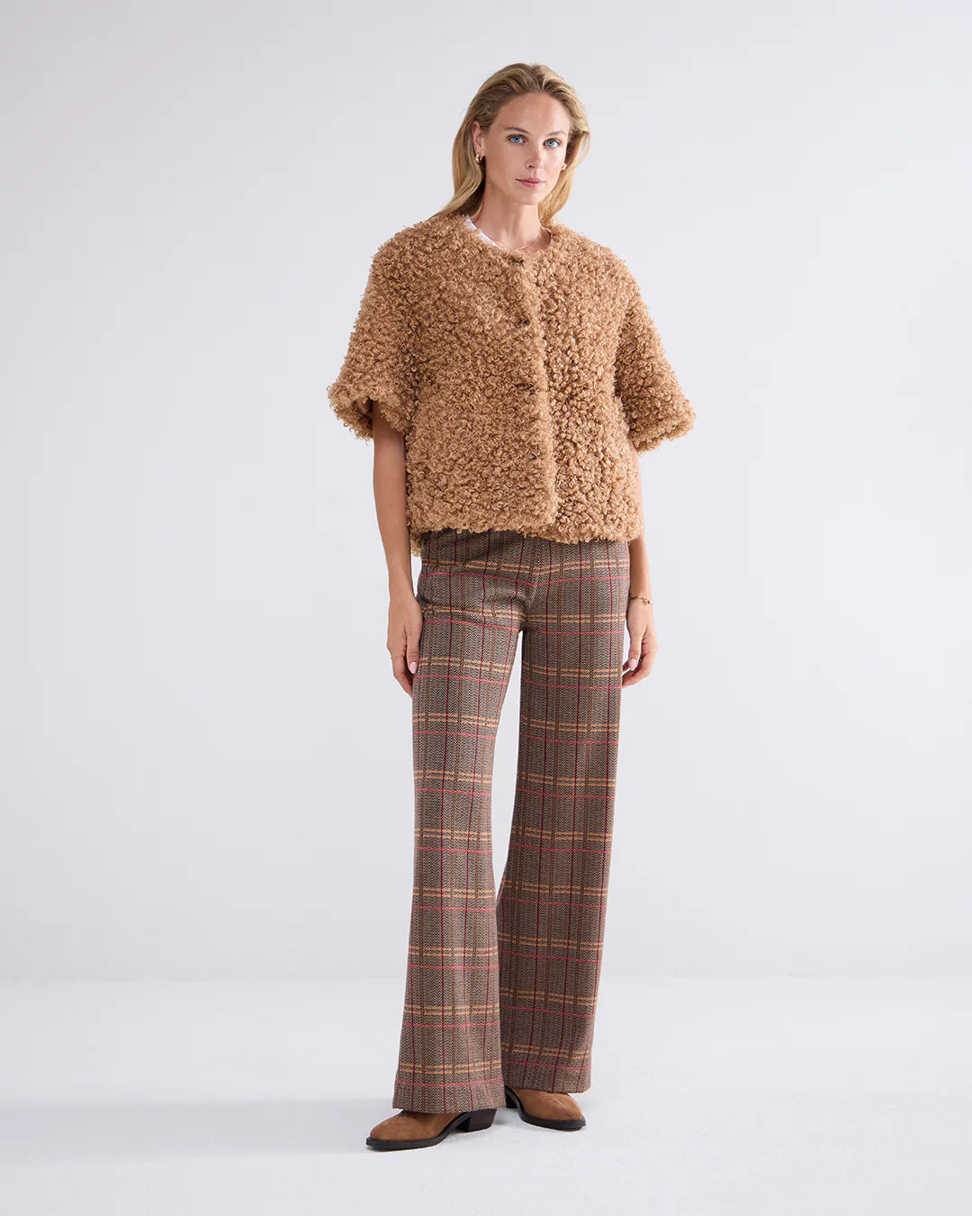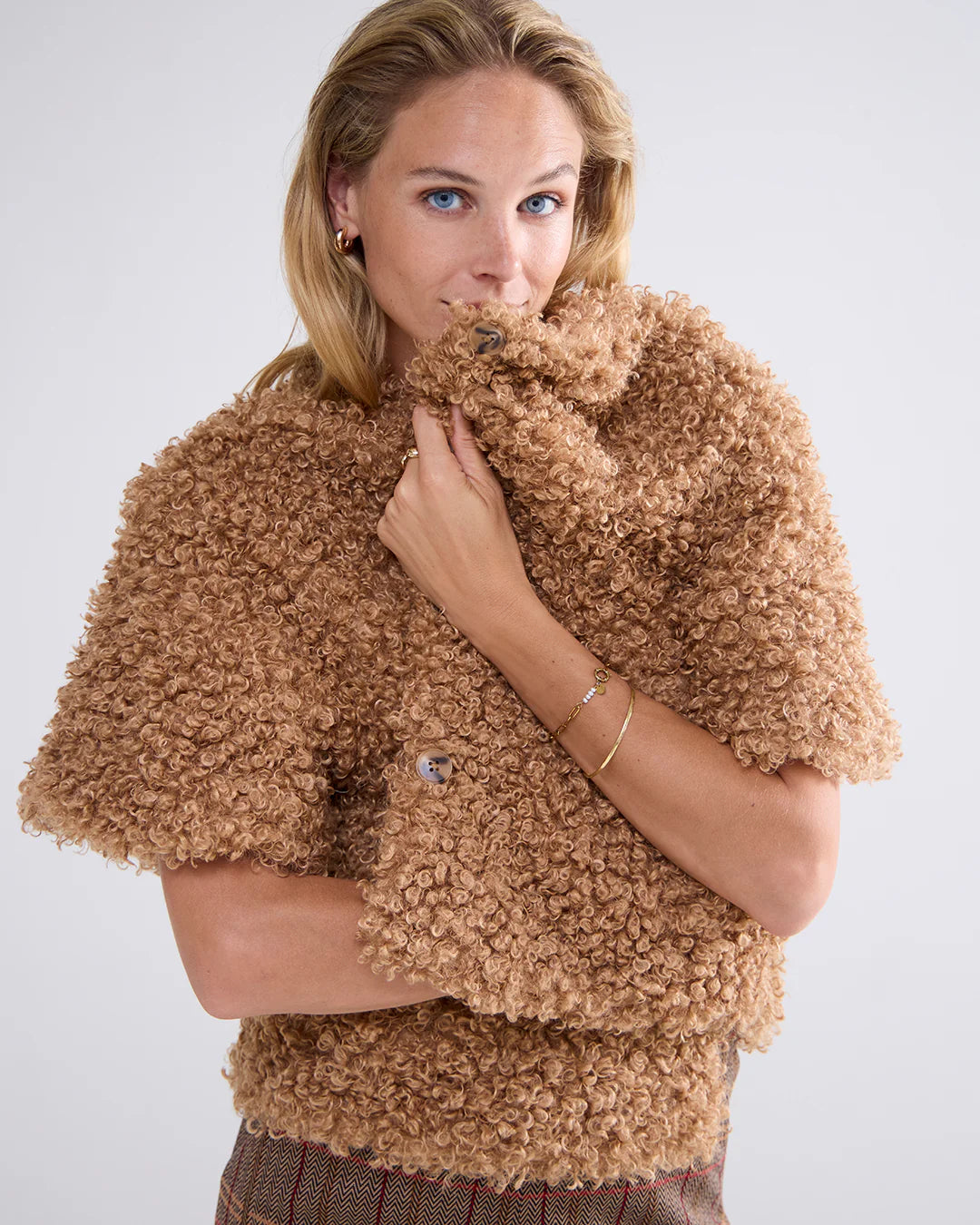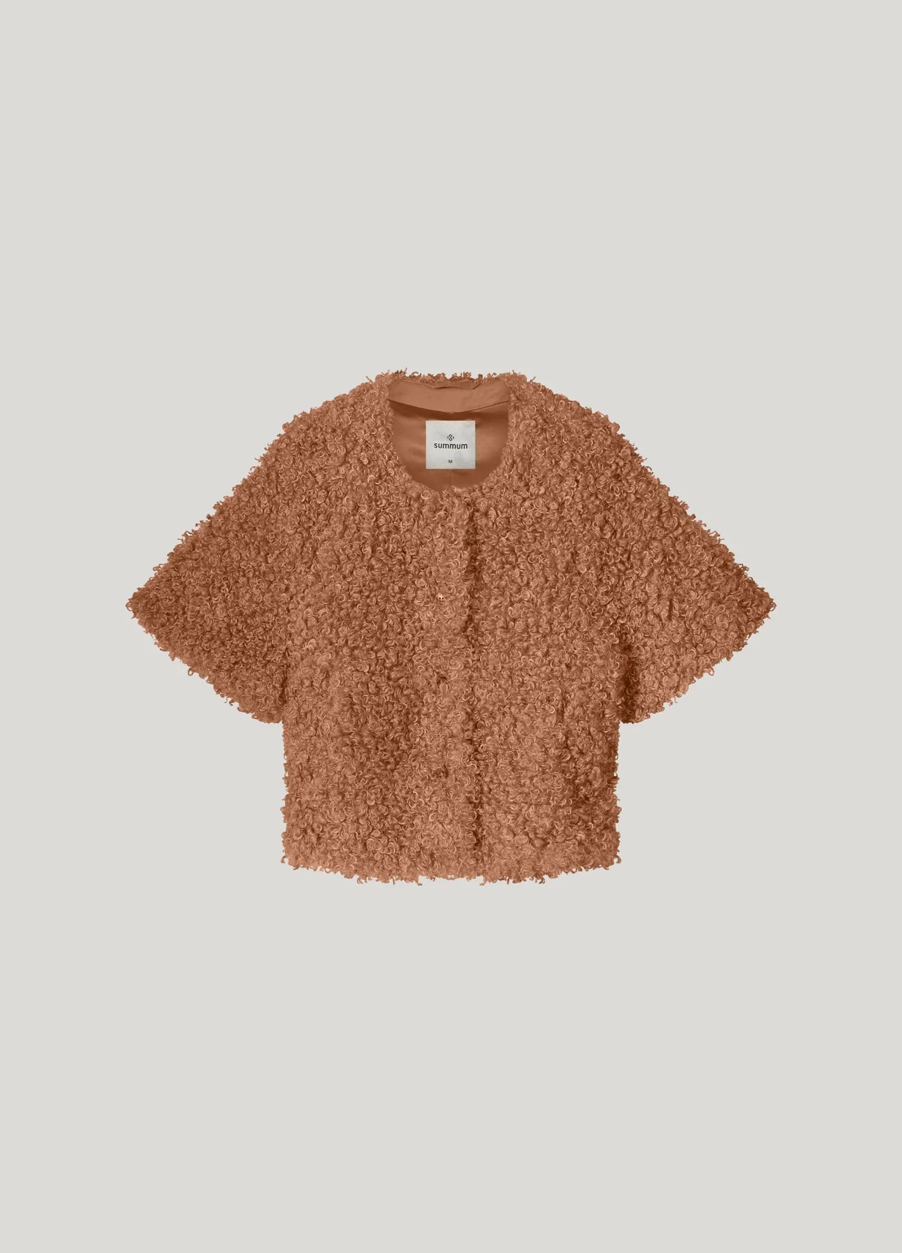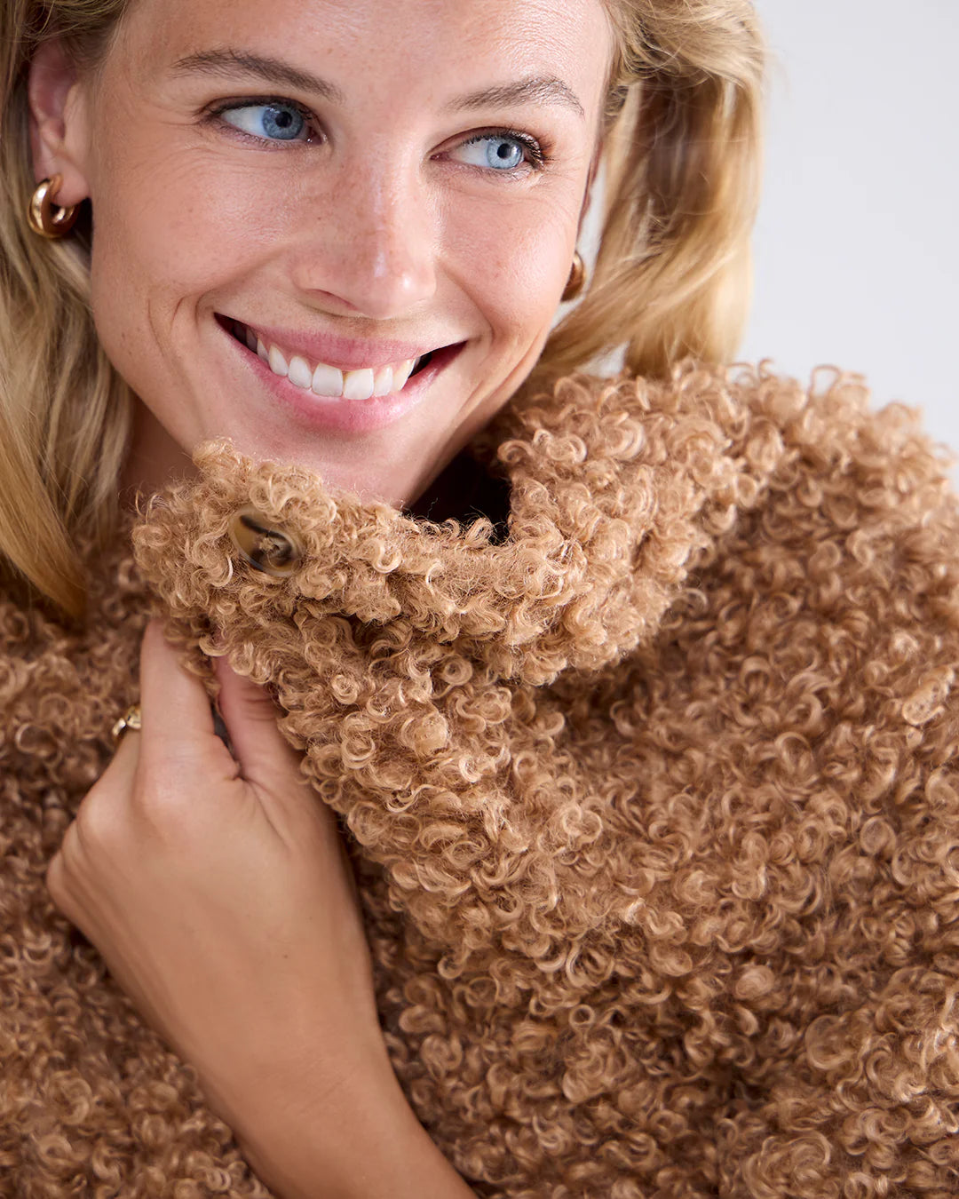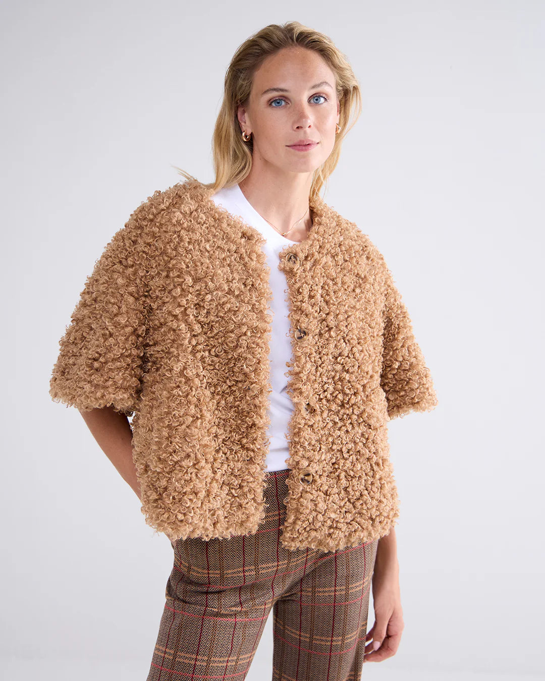 This teddy soft jacket features a curly faux fur, perfect as a cosy layer for a winter night out. With a smart lapel collar and 3/4 length sleeves, this modern take on your classic bolero jacket is sure to make a style statement.