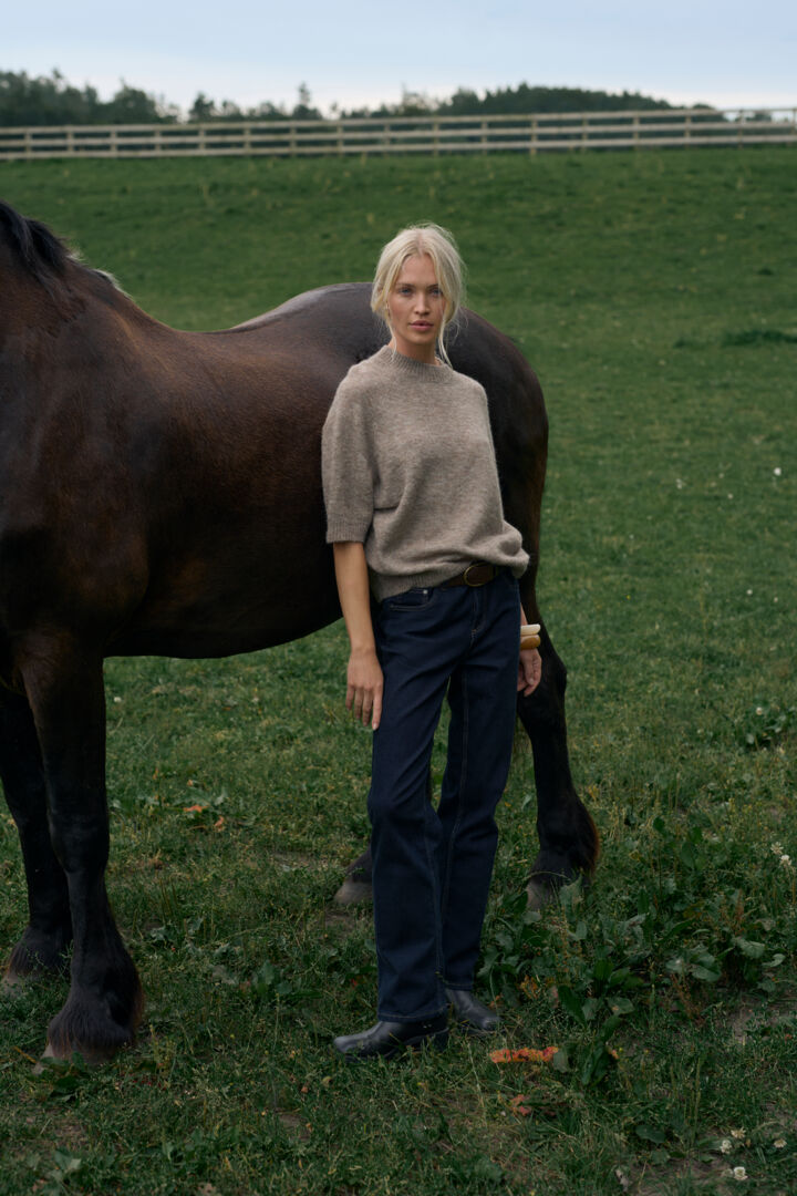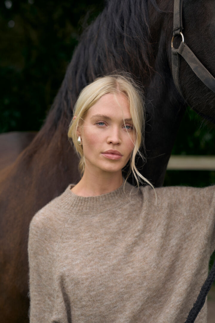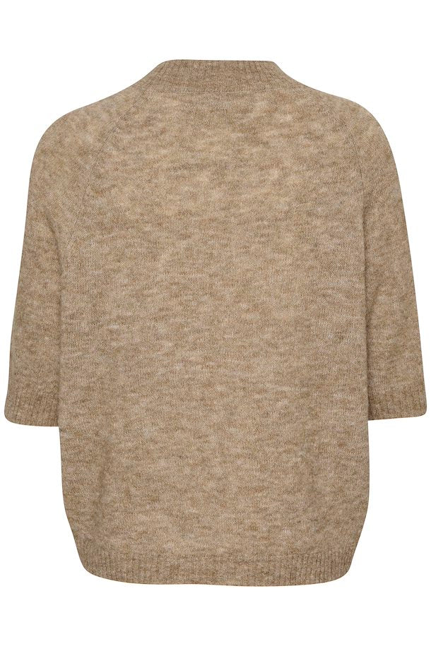 This Autumnal knit features short sleeves with ribbed finishes to the arms, neck and hem. In a simple fawn colour, this knit is simple to style with your favourite jeans and a big blanket scarf. It's subtle oversized fit and regular length will keep you cosy all winter warm.
