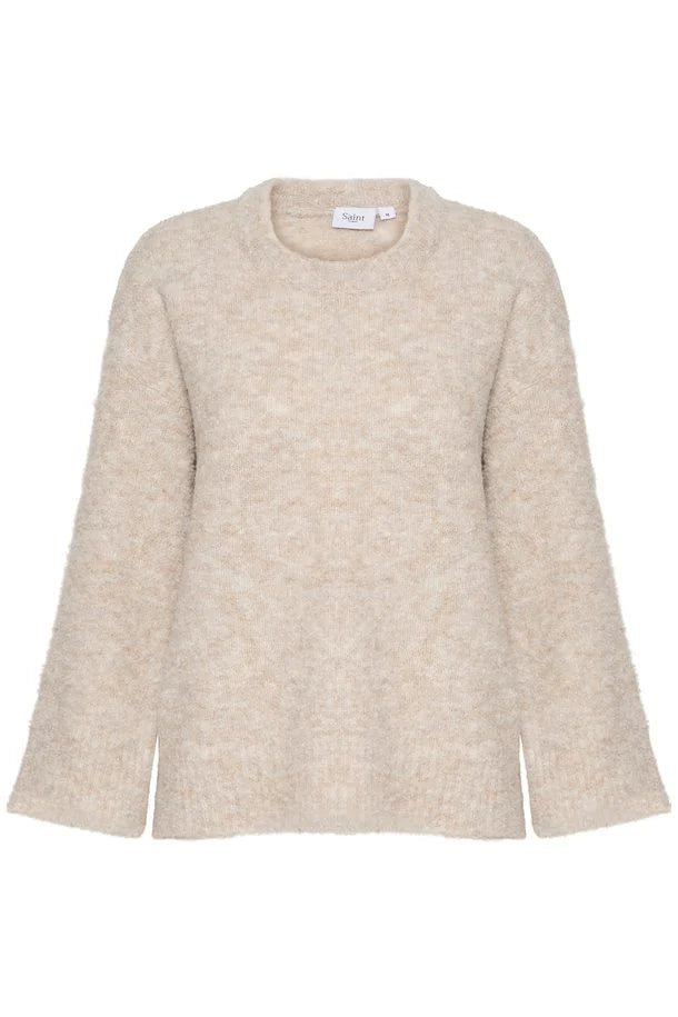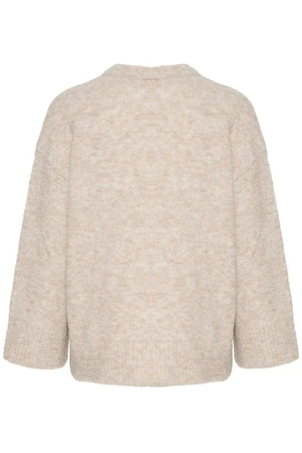 This classic lightweight sweater is made in a warm beige toned grey colour, perfect for snuggling up in the winter. In a crewneck timeless style, this sweater can be worn with anything from jeans to skirts, or even layered over your dresses to keep them in wear all year long.