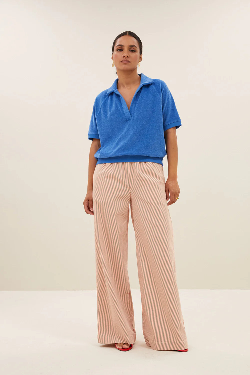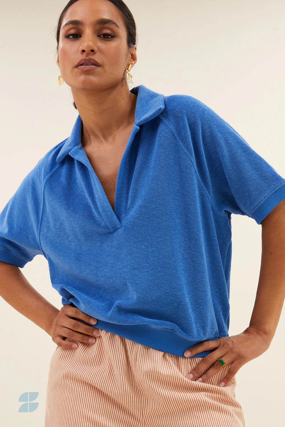 Summer isn't complete without terry towelling, and this top is perfect to bring some summer style to your look. With a v-neckline and collar, this style can be dressed up or down so is great for travelling.
