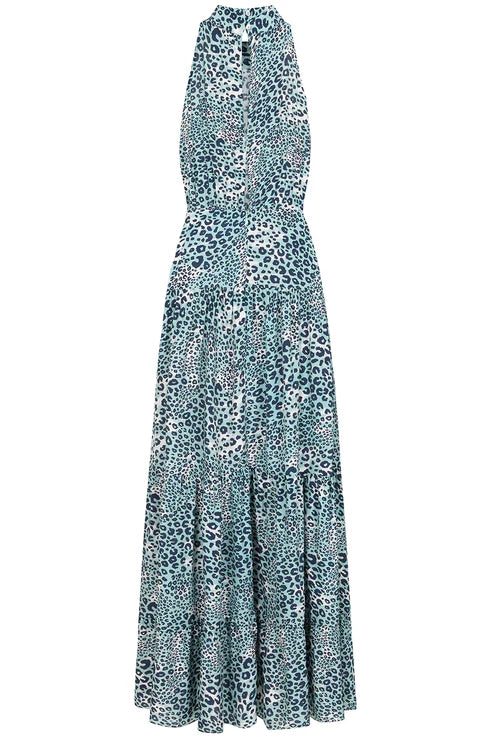 This summer dress exuded elegance. In a halterneck style with light and flowing fabric, this flattering shape is perfect for walking down the beach, or as a wedding guest outfit. With beautiful movement, this dress is a must have for travels.