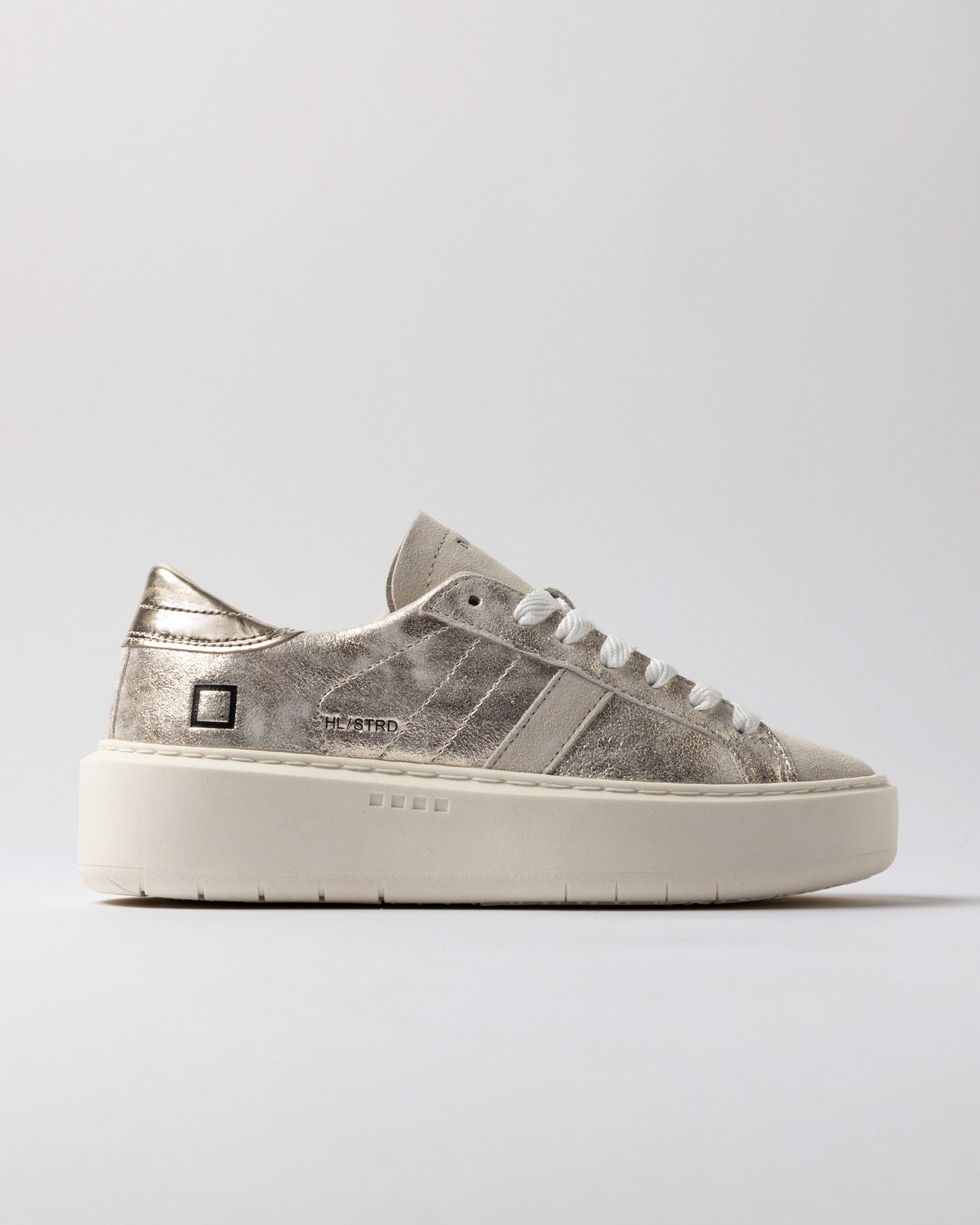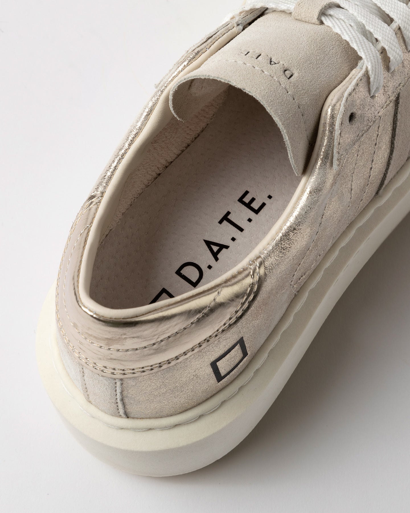 These low top sneakers feature a striking platinum coloured leather, which brings some shine to any outfit. The platform sole heightens any look, literally, perfect for pairing with dresses and leather jackets or something more casual. We especially love the beige suede detailing, which makes these perfect for dressing up or down.