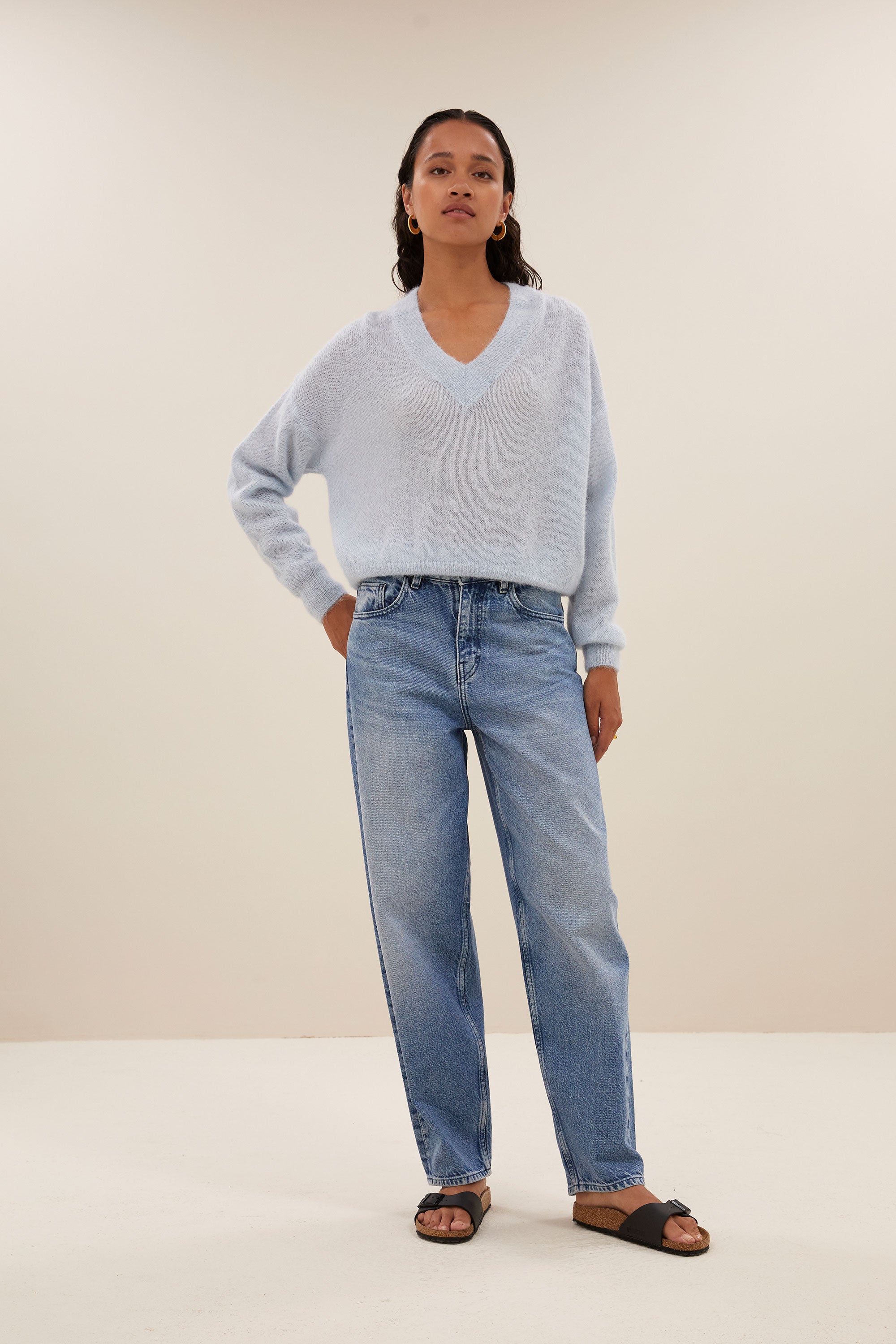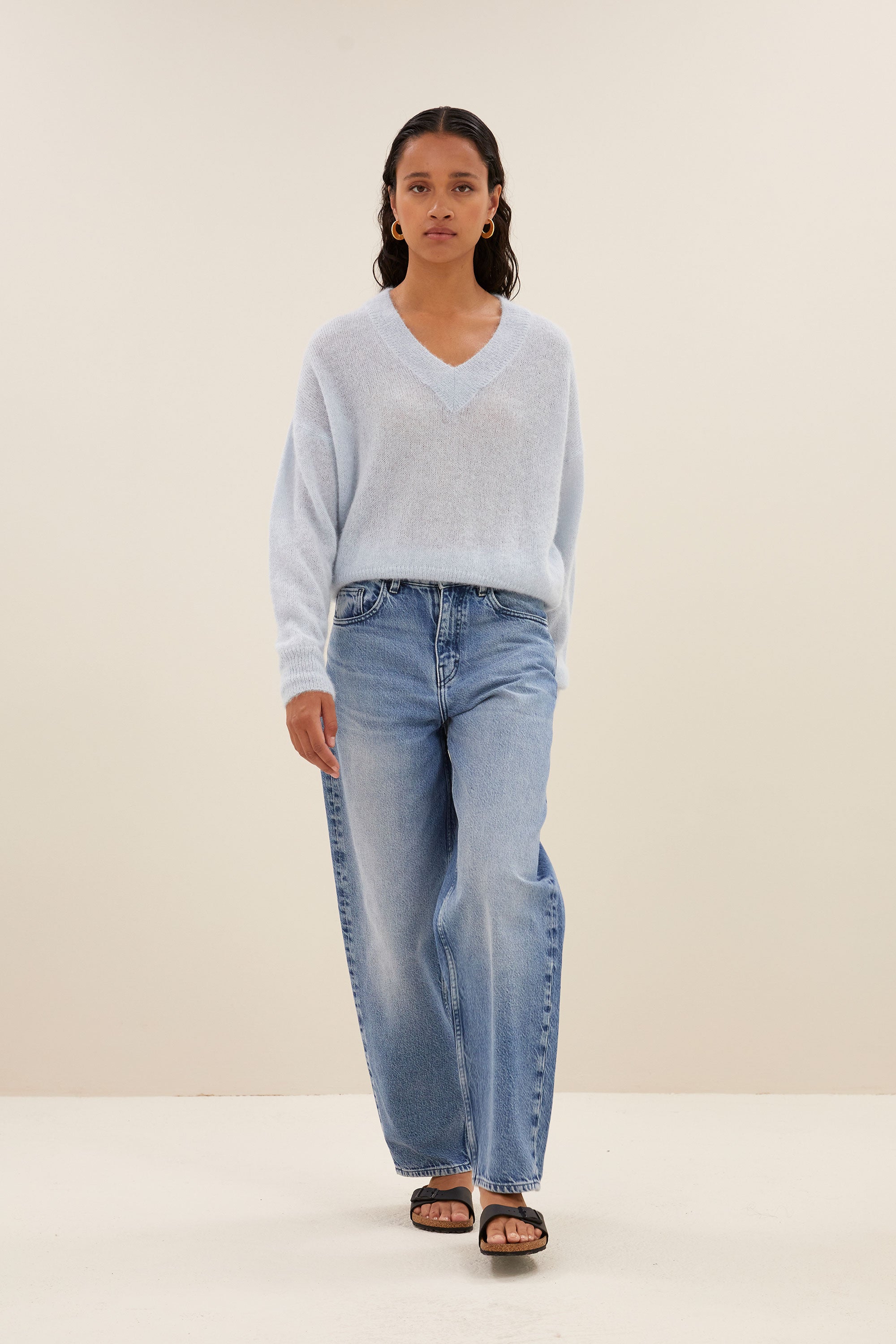This delicate and lightweight sweater will become a wardrobe must have! With a simple v-neckline and regular fit, you can layer up over t-shirts and pair with your favourite springtime skirt.