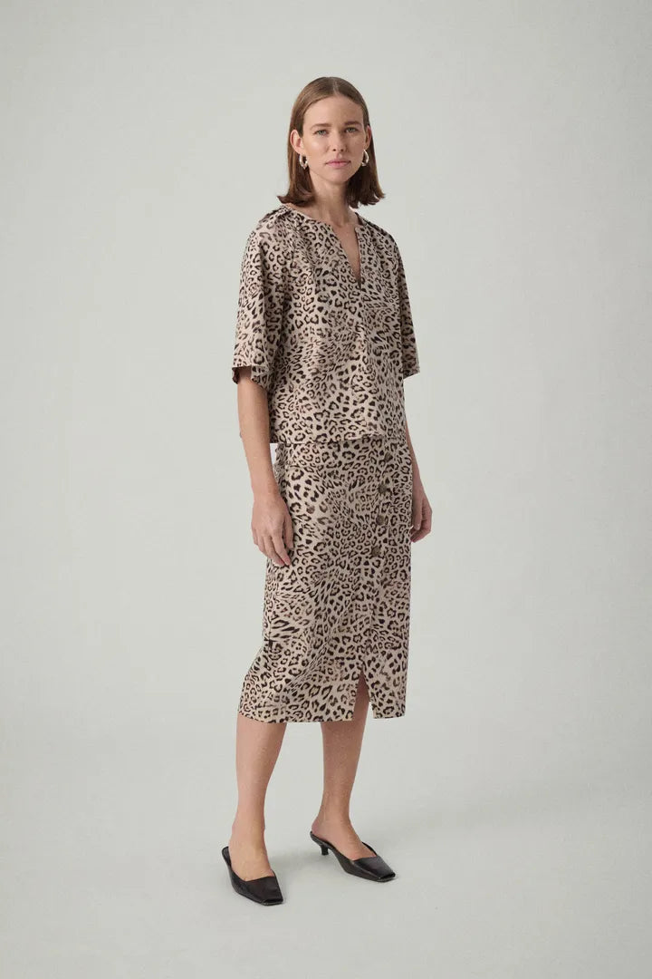 Jalina Blouse SS - Leopard Print