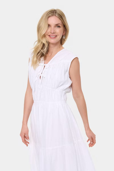 Made from 100% soft cotton, this dress is the ultimate summer style for days at the beach or nights exploring a new city. The V-neckline and sleeveless style is perfect for even the hottest of days, simply pair with tan sandals and a leather bag.