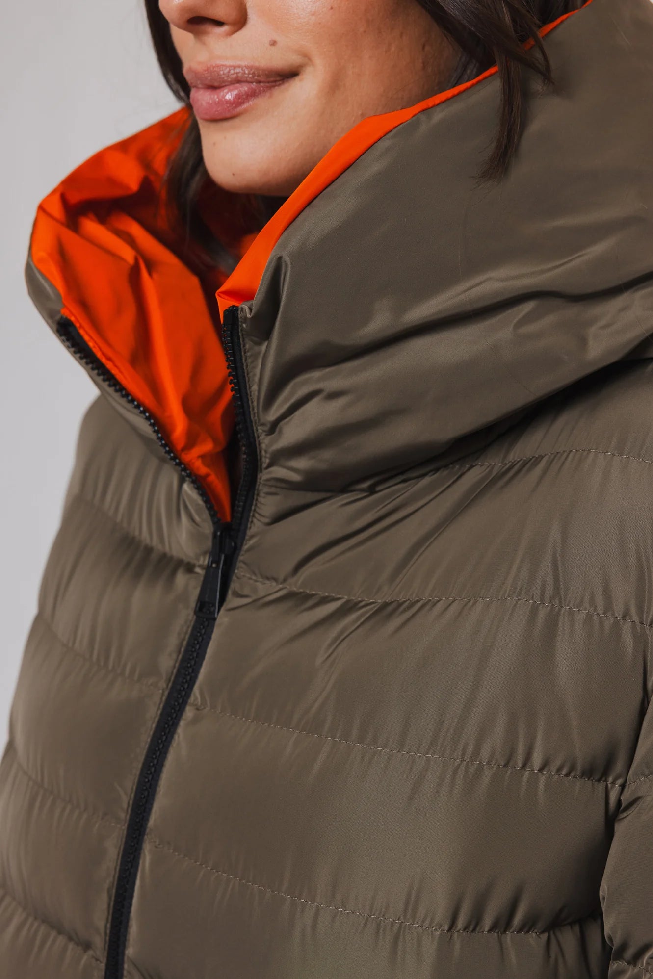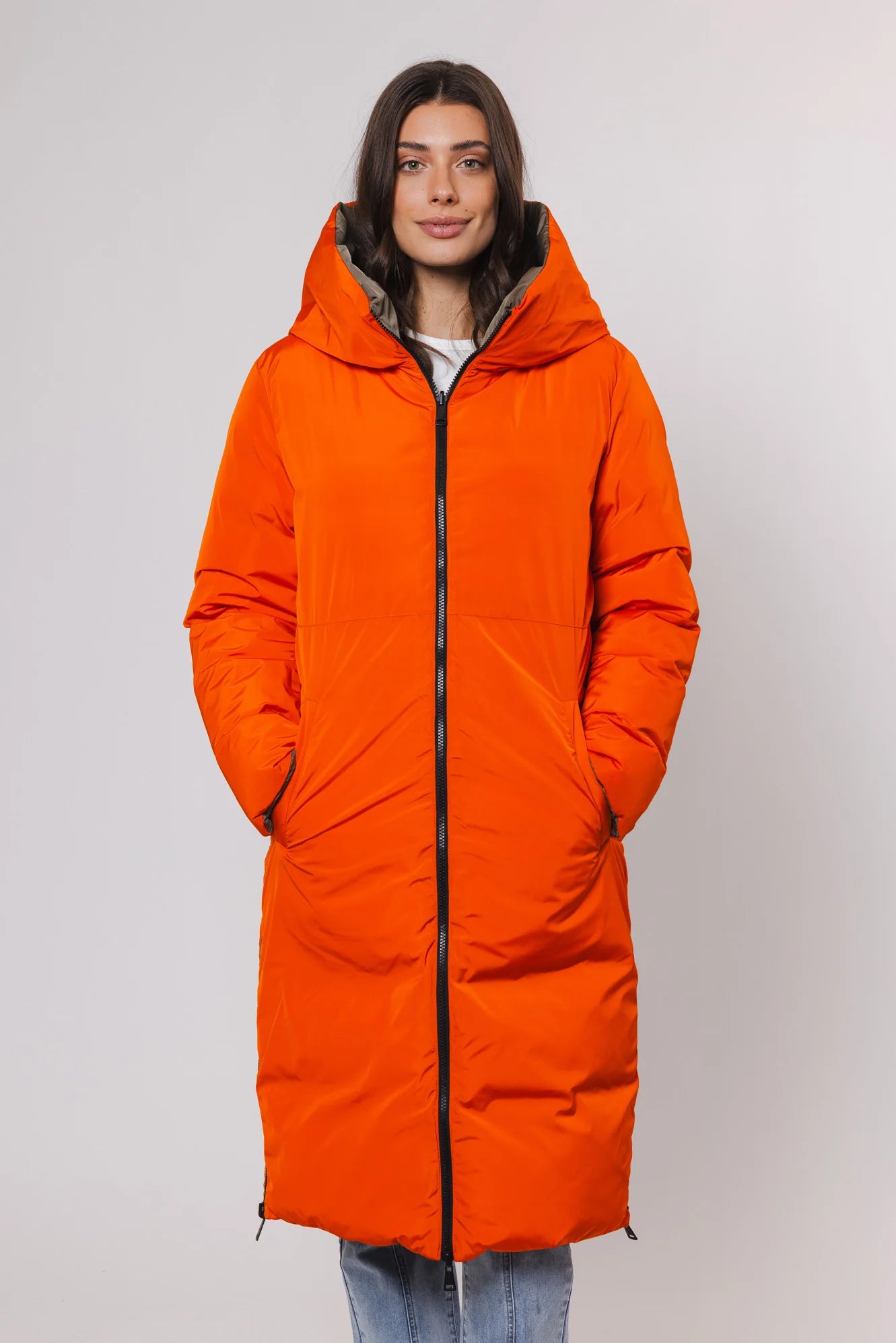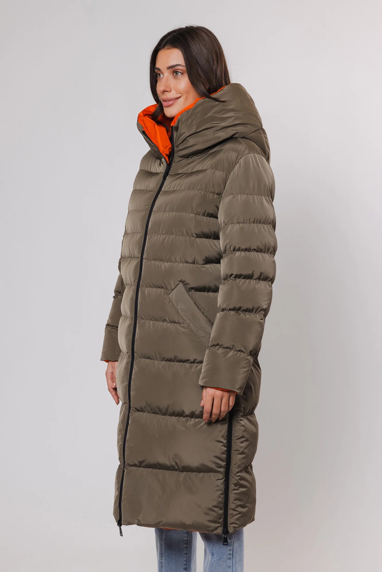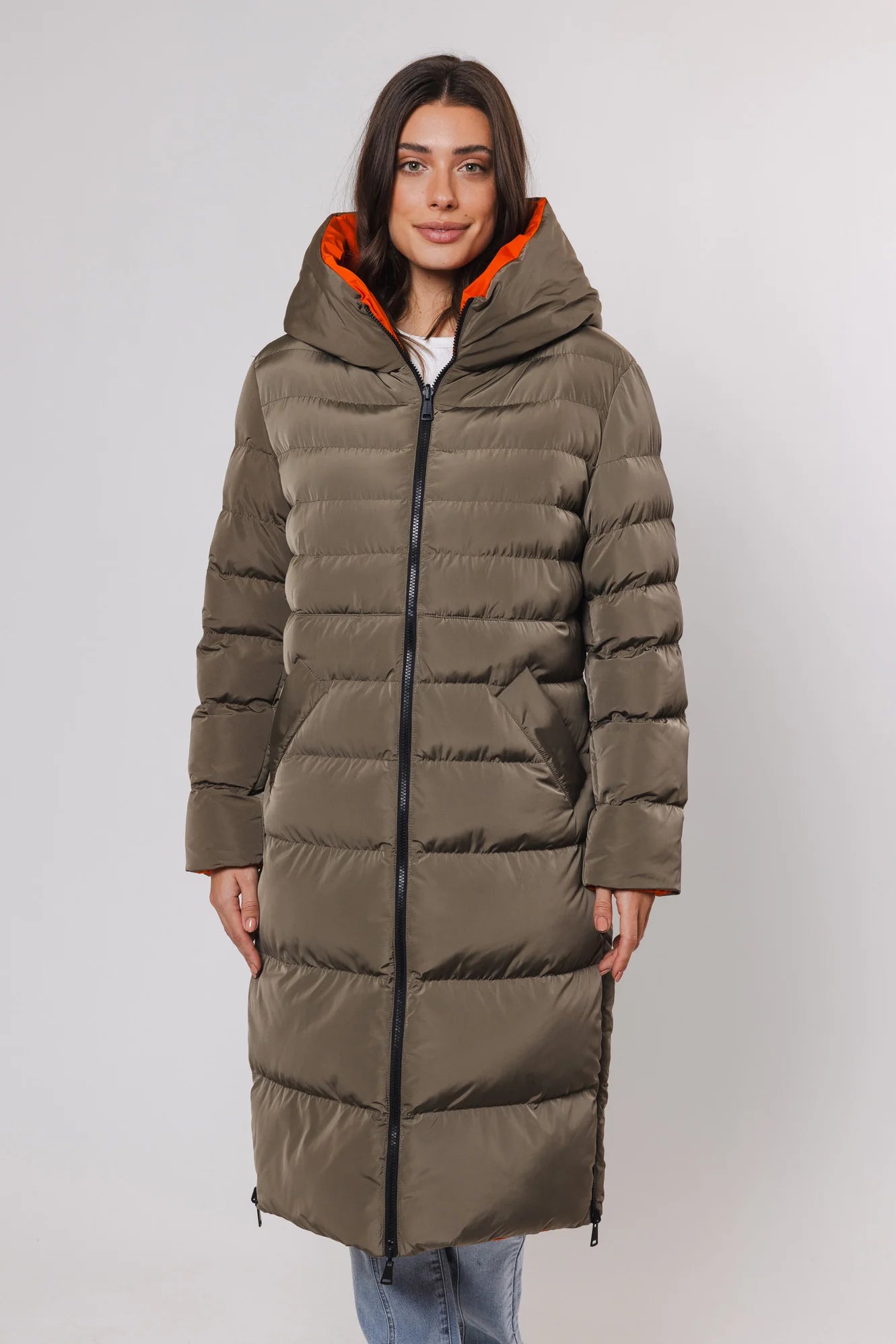 This long padded coat is a combination of stylish and cosy, just what you want for the winter months. In a reversible style with a convenient double zipper, you can match every outfit without compromising on style.