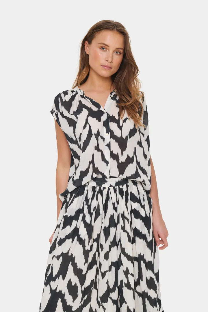 A total wardrobe must-have, this printed shirt is patterned for a statement look, but so timeless that you'll want to wear it year after year. With a round neckline and a sleeveless design, this shirt has the possibility to be worn with casual jeans or smarter tailored trousers for any occasion.