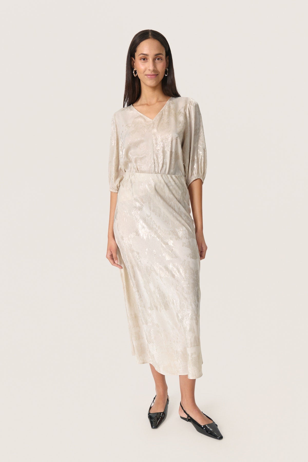 Catch the sunlight beautifully with this shimmering skirt. In an ankle length design, you can wear this skirt with casual sneakers or a heel for any occasion, plus it's neutral colour means it can be worn all year round.