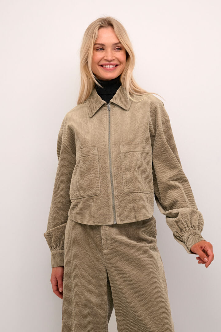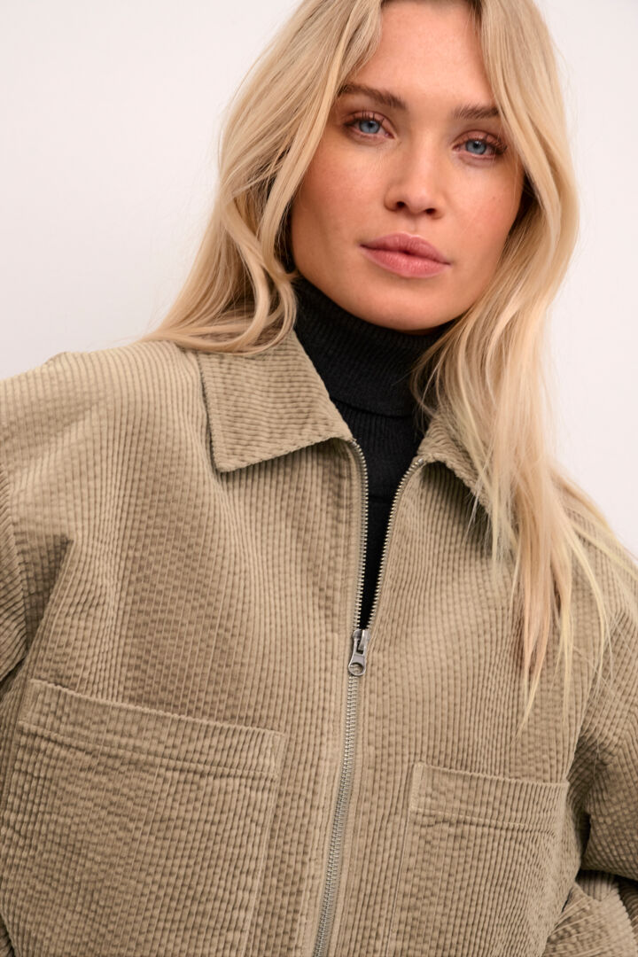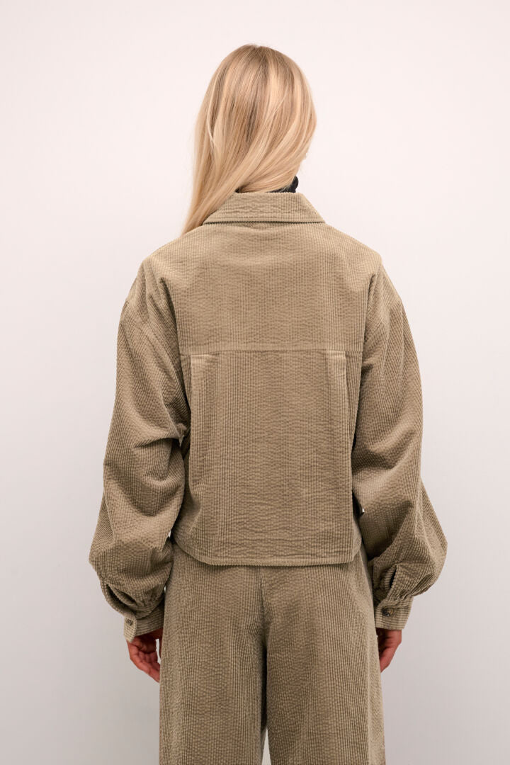 Stay fashionable and cosy with our Klay Shirt in Timber Wolf. This shacket-style long sleeve shirt boasts a fashionable corduroy effect, making it the perfect extra layer for any outfit.