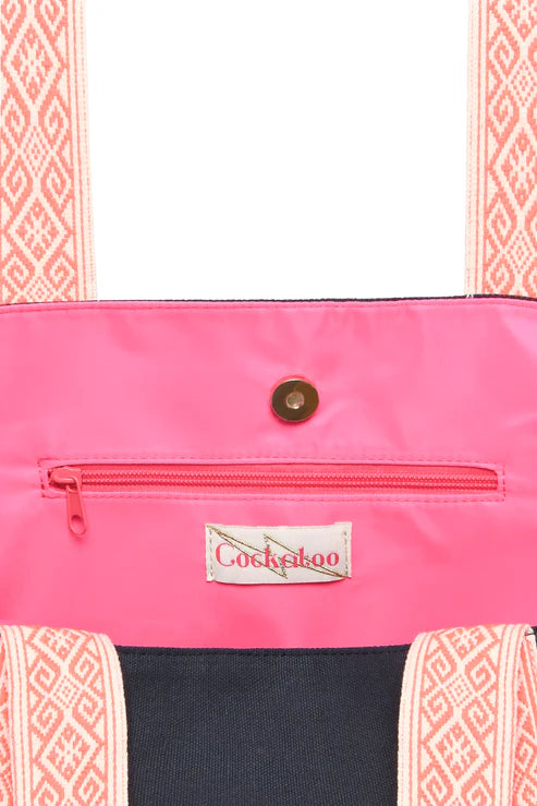 Could this be the ultimate beach companion? We think so! In a classic navy colourway with striking pink straps, this bag can be used throughout the year, but we think throwing all your beach essentials in is perfect.