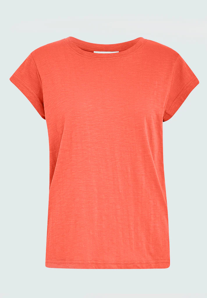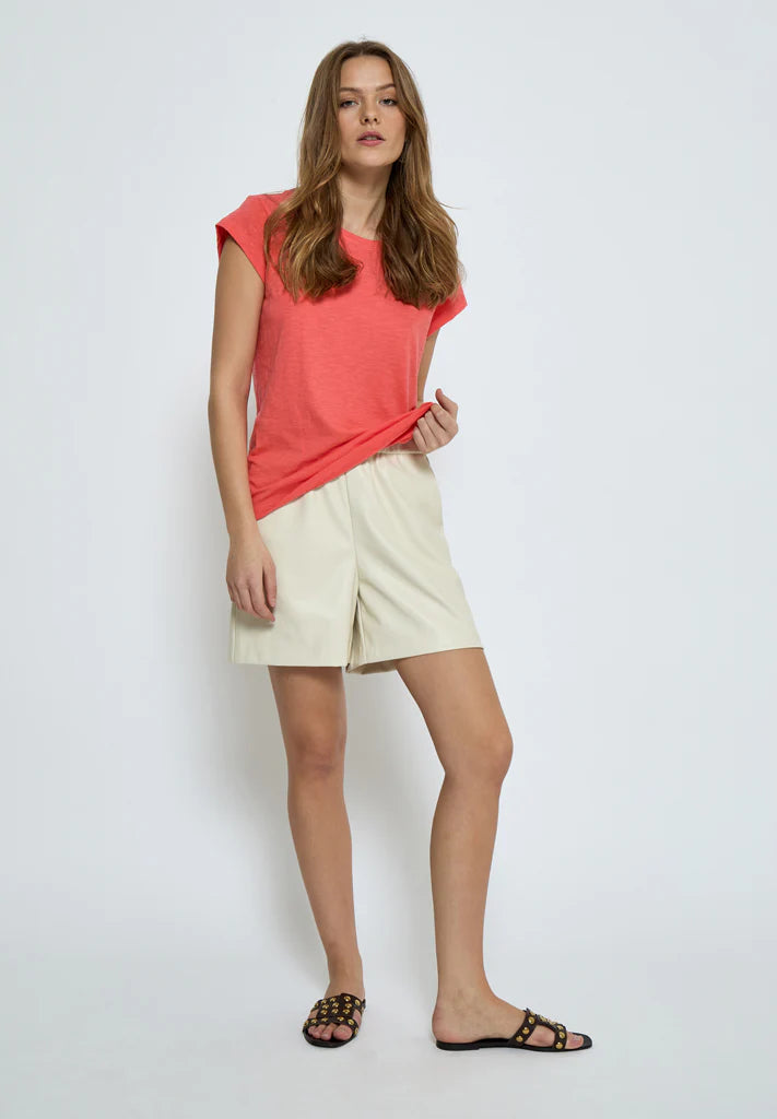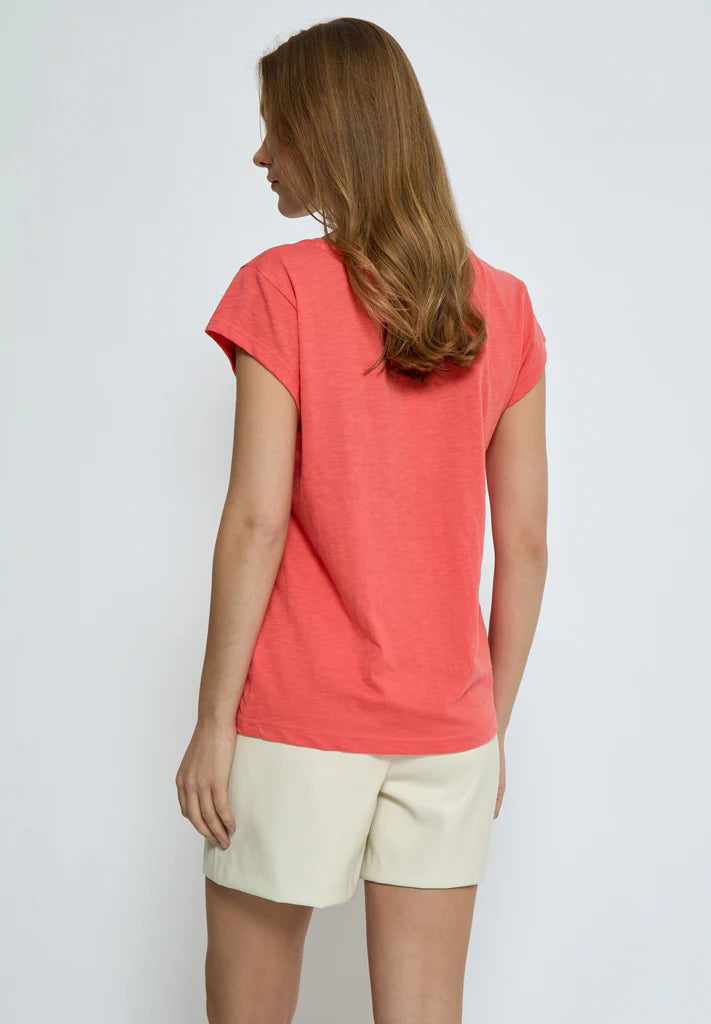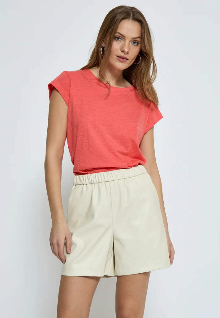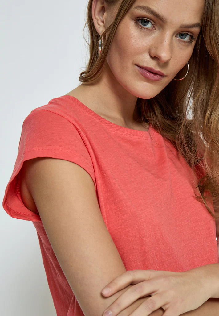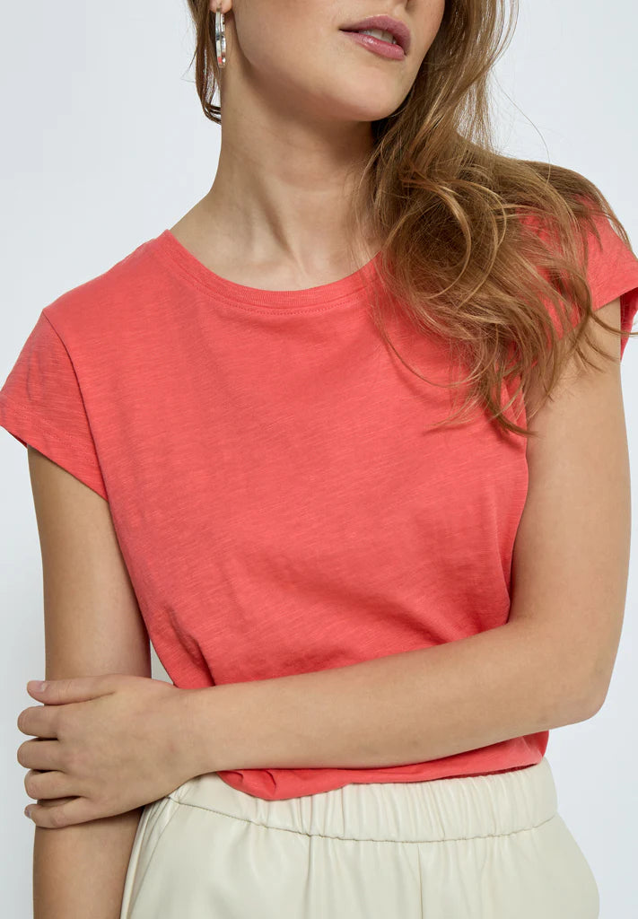 This simple tee is soft and easy, for simple styling and all year wear. With a capped sleeve and a round neckline, you can layer this tee under cardigans, chunky knits or a simple linen blazer.