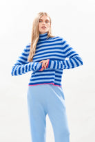 Bring a bright splash of colour to your winter wardrobe with this luxury striped jumper. With long sleeves and a roll collar, this jumper will keep you cosy throughout the chilly weather without losing out on style. The flash of pink on the wrists and hem gives this bold jumper an extra touch of fun.