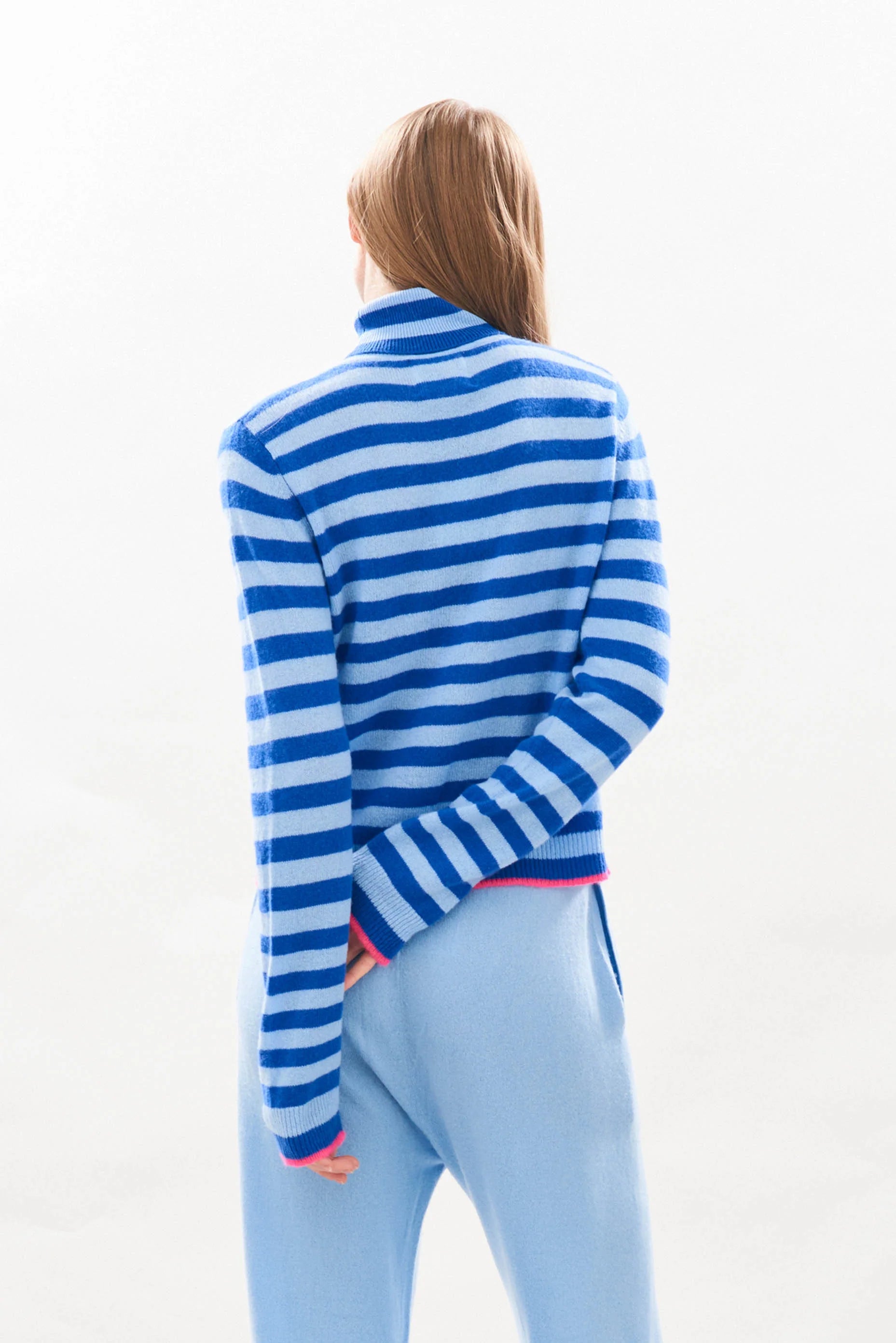 Little Stripe Roll Collar - Wedgewood/Bright Blue