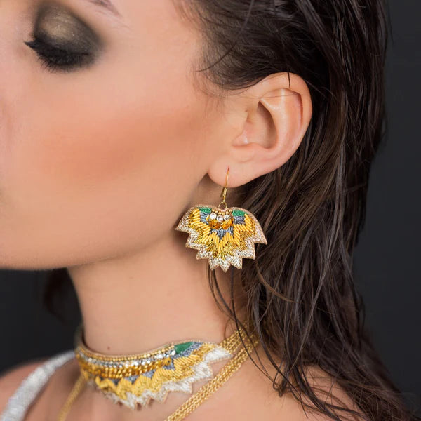 These leaf-style earrings are a bohemian twist to your outfits. With stand-out beading and thread work, these earrings are a special addition to your collection and can be worn with pretty much anything.