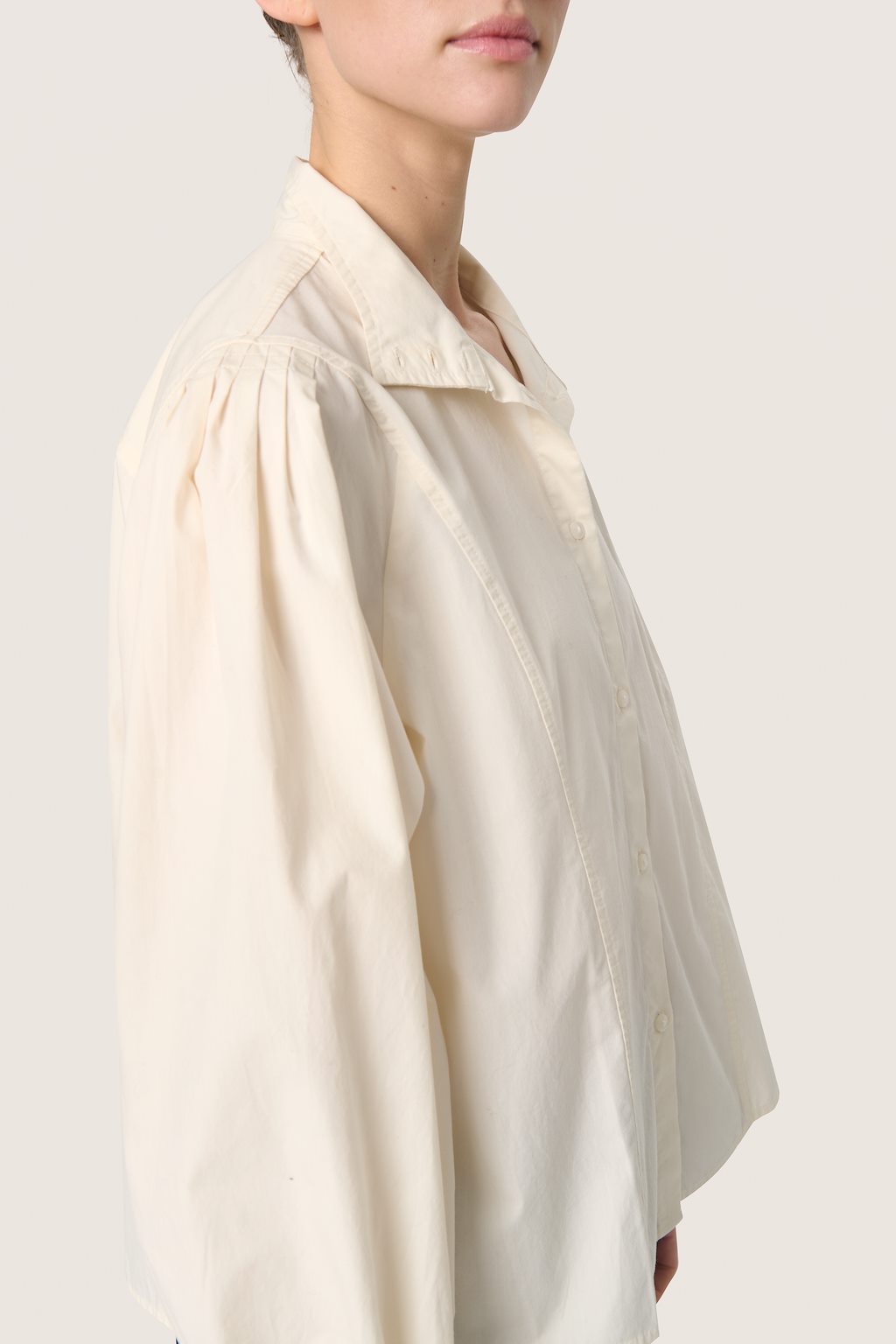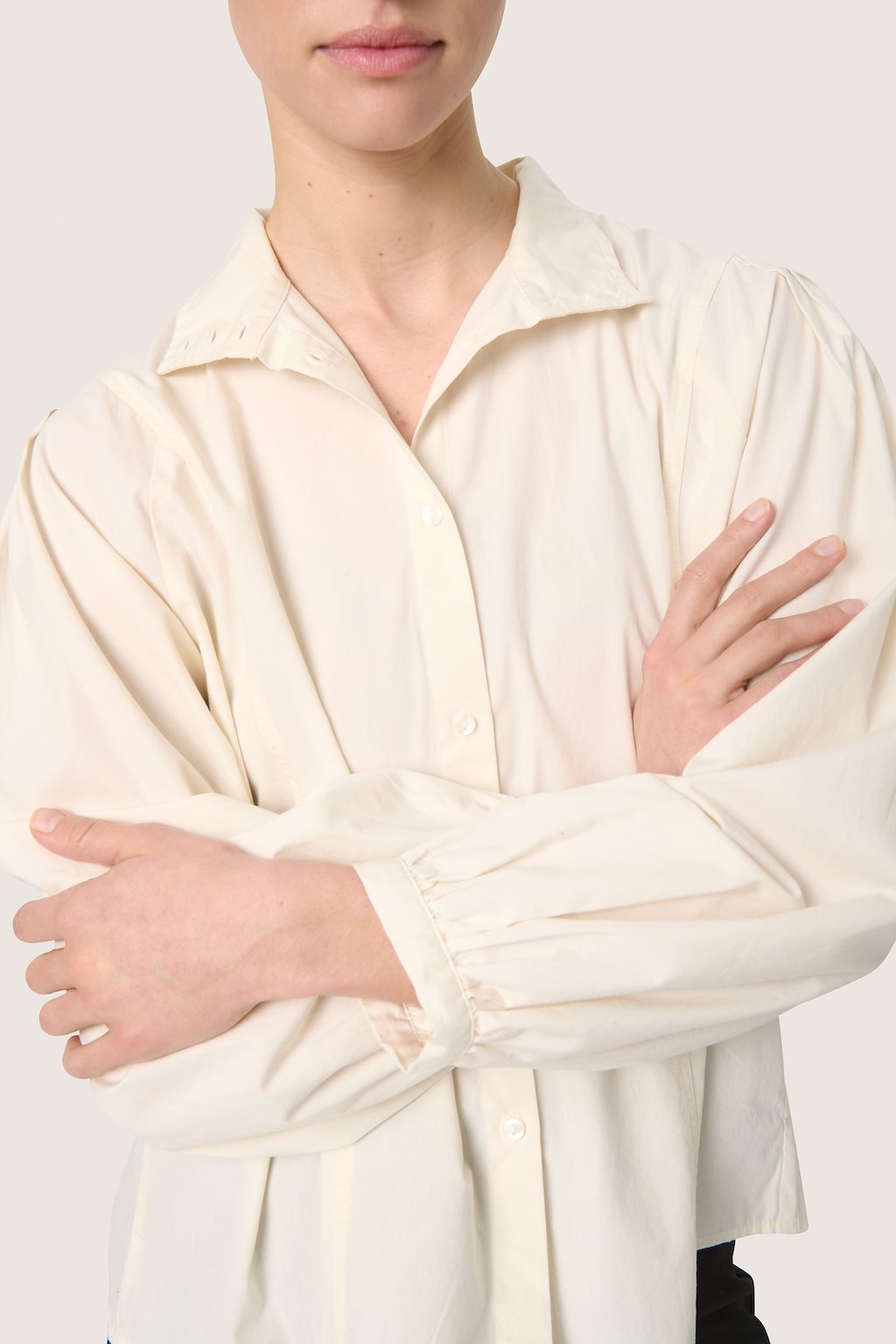 This long-sleeved shirt features a textured design, collar, and button closure for a classic look. The voluminous effect adds a touch of sophistication, making it a must-have for creating feminine workwear looks.