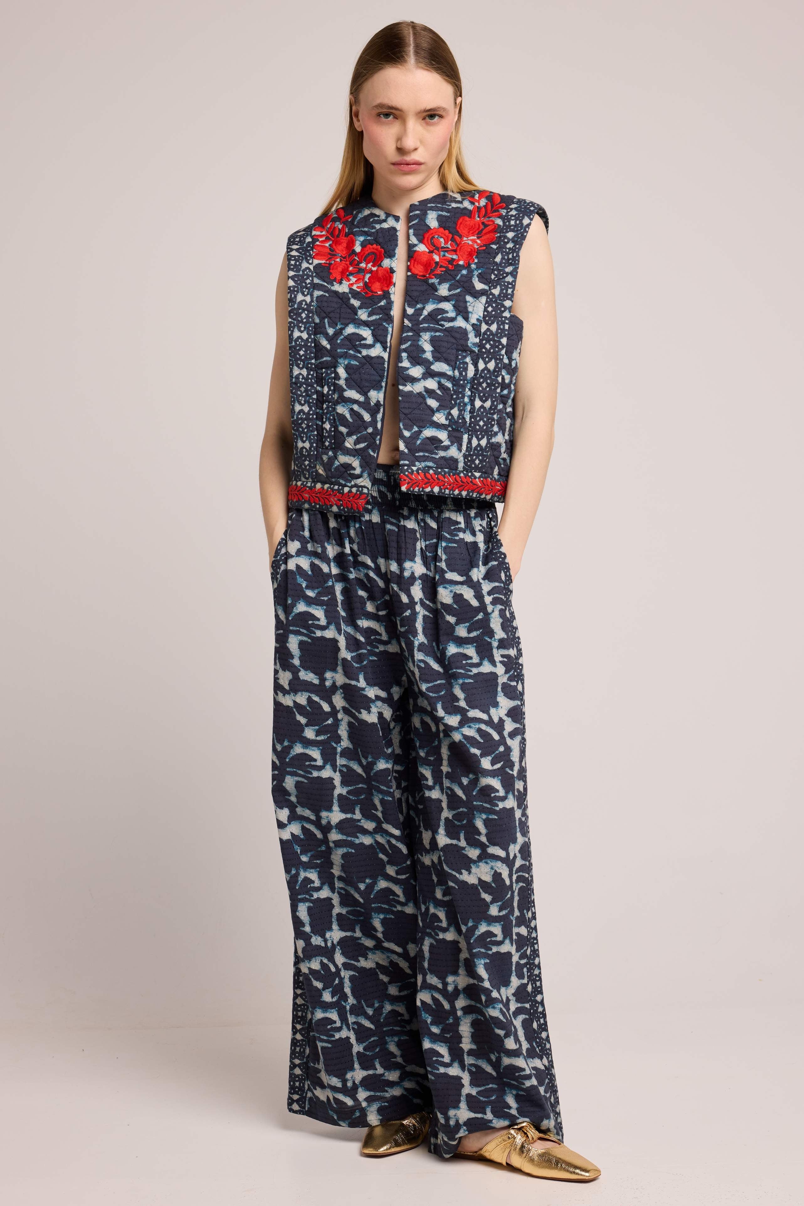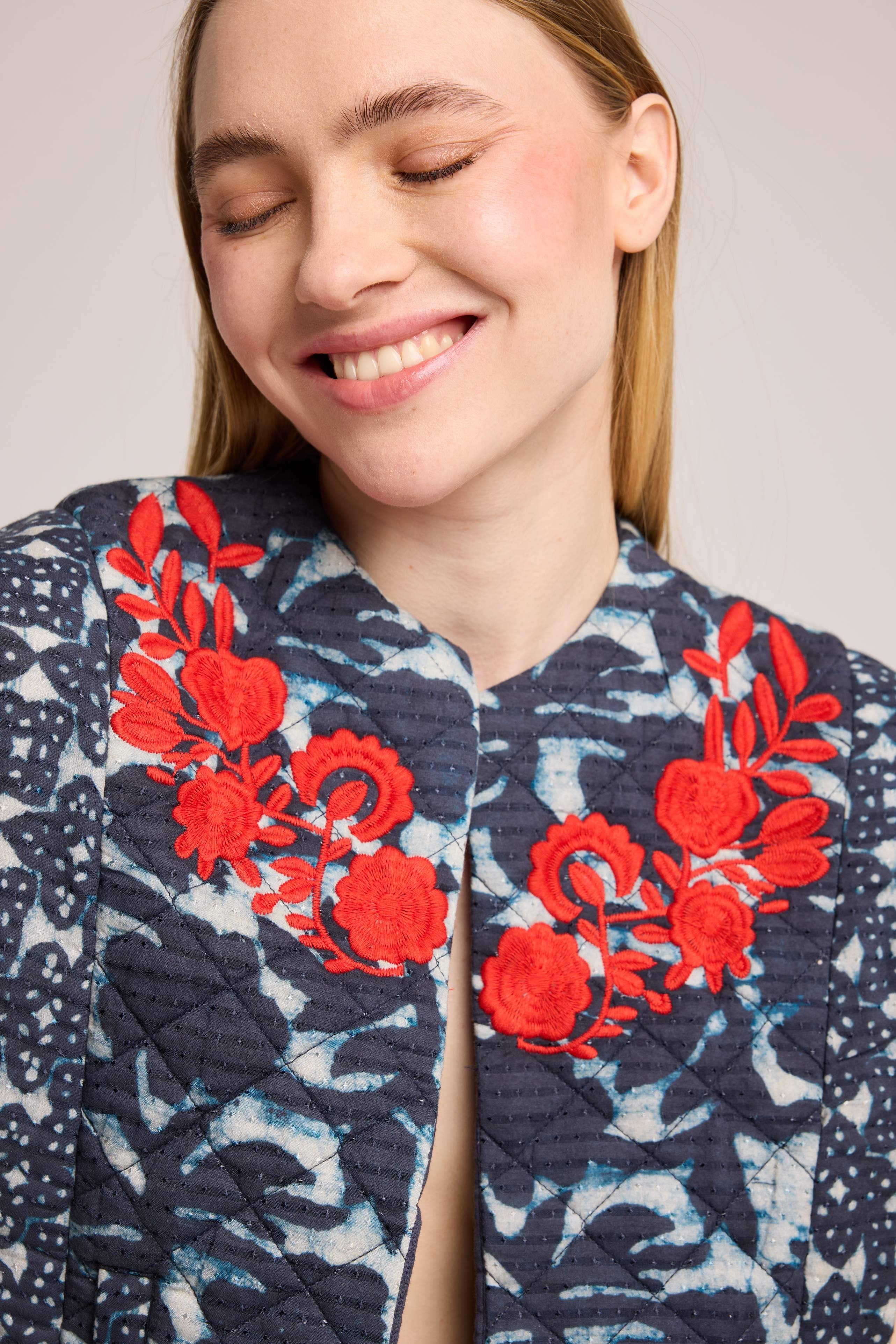 A simple blouse and jeans can be infused with character when layered with this gilet. In a quilted style, this sleeveless gilet features beautiful embroidery all over, bringing bohemian flair to your look.