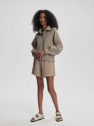 Any airport outfit isn't complete without the ultimate athleisure from Varley. This raglan sleeve sweatshirt is made from super soft buttery fabric, so you'll be comfortable all day. When paired with the matching pants, this look is seriously chic.