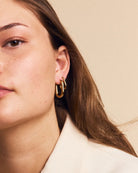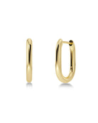These earrings are a modern twist on your classic chunky hoops. In a oval style, these gold hoops are perfect for every day wear.