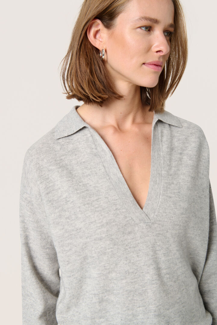 If you love neutrals, this pullover knit if perfect for those casual days. In a polo style, with a relaxed collar and deep v-neckline, this knit can be tucked into jeans or tailored joggers for work from home days or relaxed days in town.