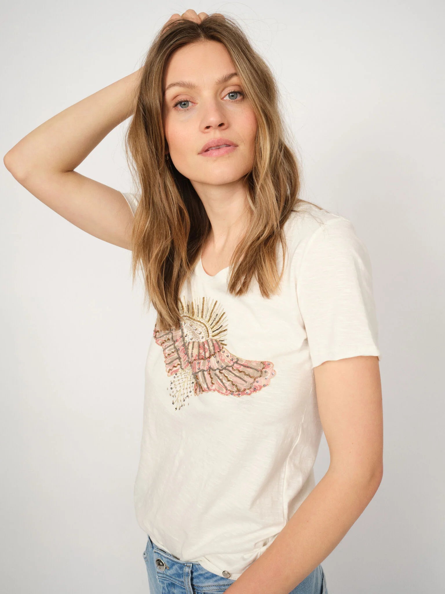 A graphic tee totally transforms any look. Whether it's paired with tailored trousers and a matching blazer, or your favourite pair of jeans, this tee is a standout. Covered in the most beautiful hand beaded embroidery, this tee is a simple way to bring some glamour to your look.