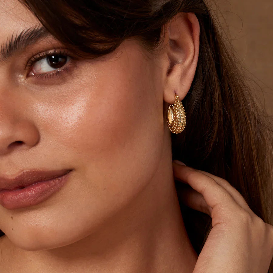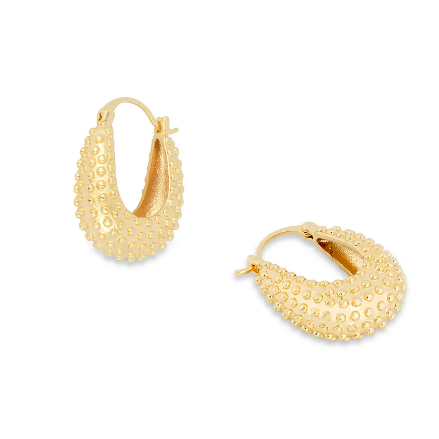 These statement earrings are are small hoop style, perfect for daily wear. With a dotted texture, these earrings add some extra style to your look.